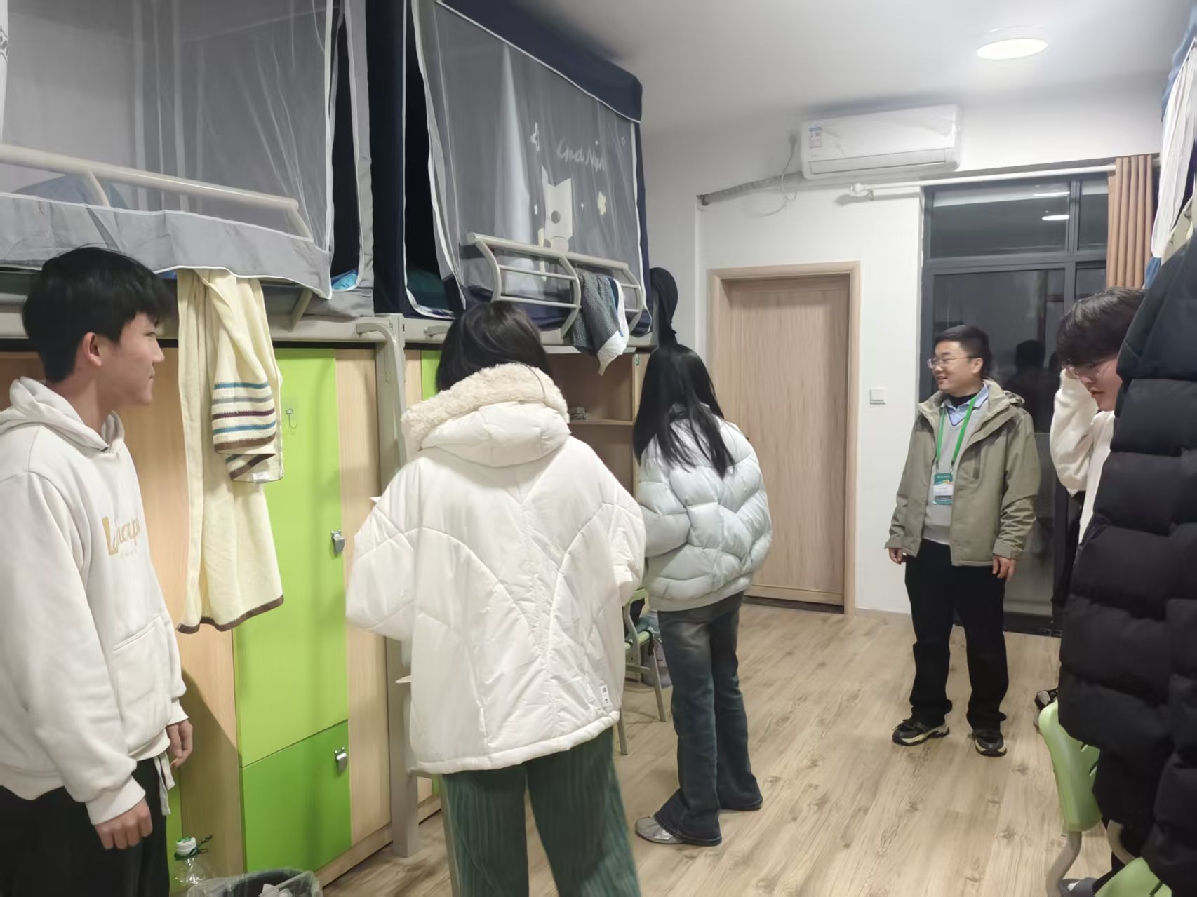 为进一步深化师生交流,全面了解学生宿舍生活状况,推进学生寝室规范化、安全化、文明化建设,营造良好的学习生活环境,2025年12月11日智能工程学院全体辅导员深入育英书院C栋开展寝室走访活动并进行网络思想政治教育。此次走访将精细化管理与人文关怀深度融合,为学生成长保驾护航,为校园安全筑牢夯实基础。