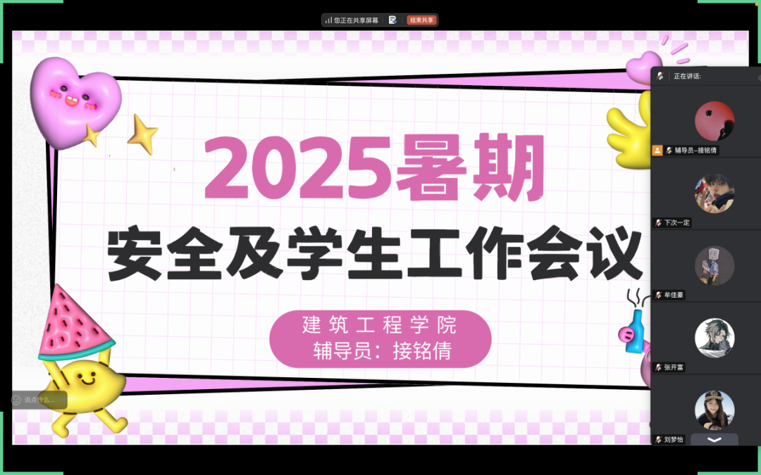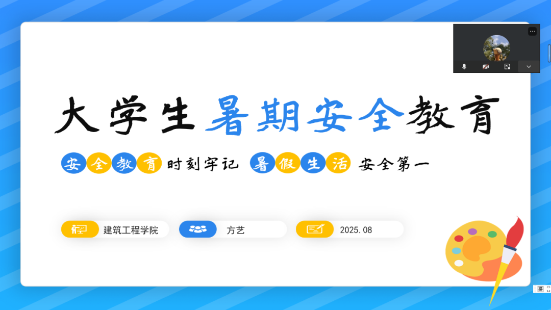 为深入贯彻落实立德树人根本任务,切实将学生安全放在教育工作首位,以扎实举措守护学生身心健康与生命安全,确保每位同学度过一个平安有序、富有意义的假期,建筑工程学院于近日组织开展线上暑期安全教育主题班会,由各辅导员主持,全体学生线上参与。