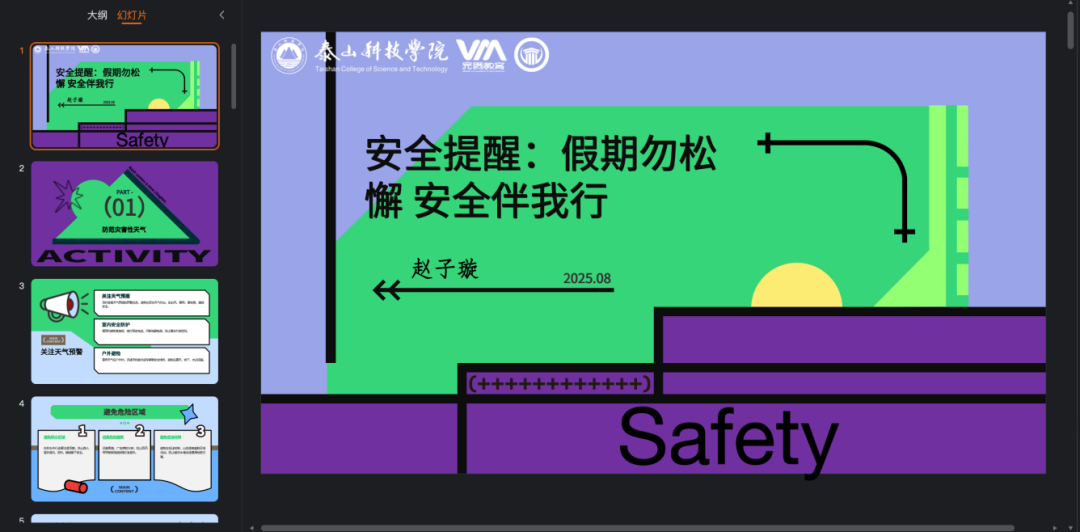 辅导员赵子璇面向2024级建筑工程技术(专)与智能建造技术(专)专业学生,召开了主题为“假期勿松懈 安全伴我行”的线上专题教育会议。此次会议通过腾讯平台开展,聚焦于暑期常见的安全风险,结合实际案例为同学们上了一场内容丰富、警示性强的安全教育课。本次会议聚焦假期高发的风险点,围绕“防汛防灾、防溺水、交通安全、网络防骗、食品安全、旅游风险”这六大板块展开。赵老师以近期校园周边的典型案例为切入点,借助 PPT 图文展示以及播放视频短片的方式,助力学生直观地了解身边存在的安全隐患。在气象灾害防范部分,介绍了汛期应对突发天气的策略,着重强调“非必要不前往山地、水边、临崖区域”。针对溺水问题,通过“警示一刻钟”环节讲述了大学生溺水事件,强调“不私自下水、不擅自施救”的原则。特别针对暑期兼职与实习诈骗现象进行讲解,还原诈骗话术,并指导学生下载使用国家反诈中心 APP。最后,提醒学生合理规划假期,注重心理健康调适,倡导健康的假期生活方式。