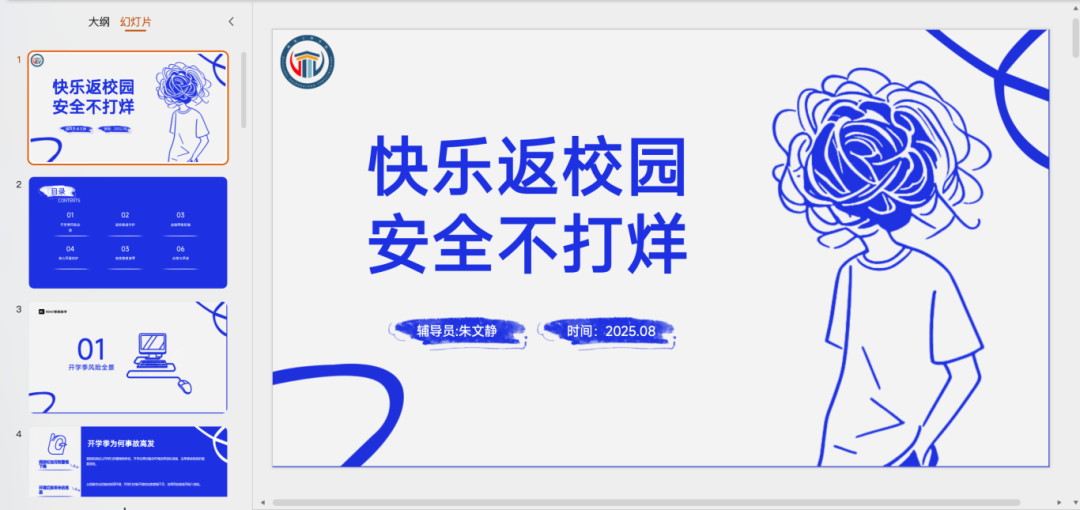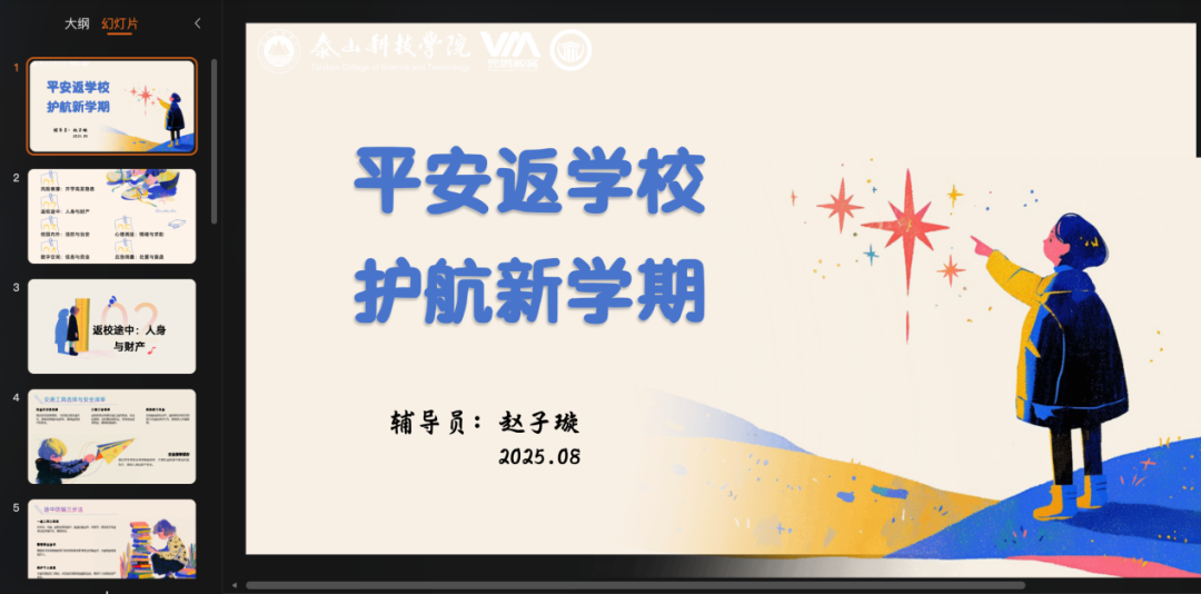 辅导员接铭倩面向23级学生开展线上安全教育主题班会,围绕“返校安全、返校时间、准备工作、学期安排”展开。首先,她强调返校安全,提醒防范电信诈骗、注意交通安全,要求家校联络畅通;其次,明确返校时间和上课安排,提醒部分学生补考,严禁无故延迟返校;接着,细化摸排学费缴纳、宿舍整改等准备工作;最后,初步解读学期安排,为新学期平稳过渡奠定基础。
