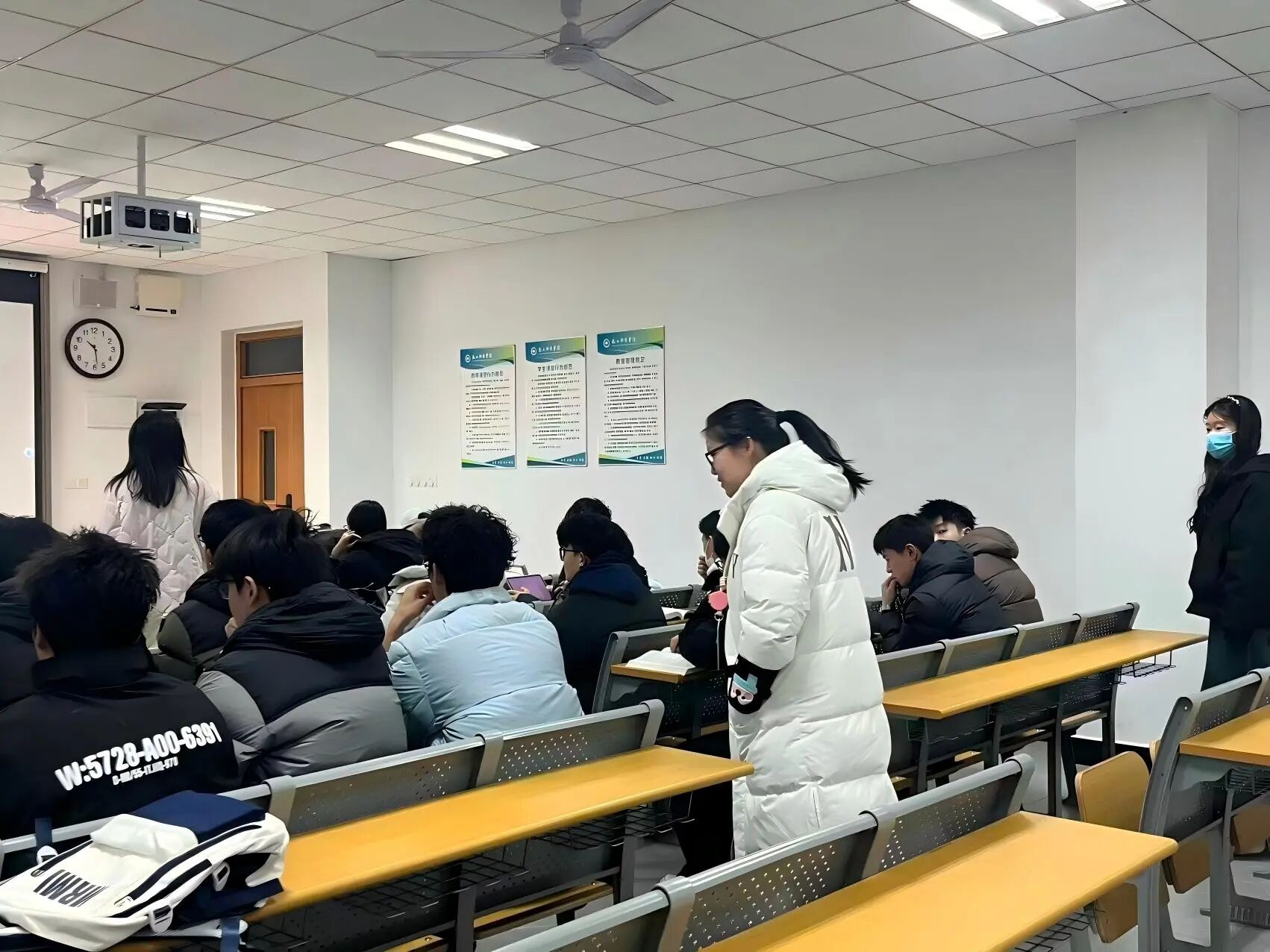 在查课现场,老师们仔细记录着每个班级的课堂状况。大部分班级的课堂秩序有条不紊,学生们精神饱满,能够紧密跟随老师的授课节奏,展现出优良的学习风貌。对于少数存在迟到、课堂注意力不集中等问题的学生,老师们当场予以提醒,引导他们端正学习态度。