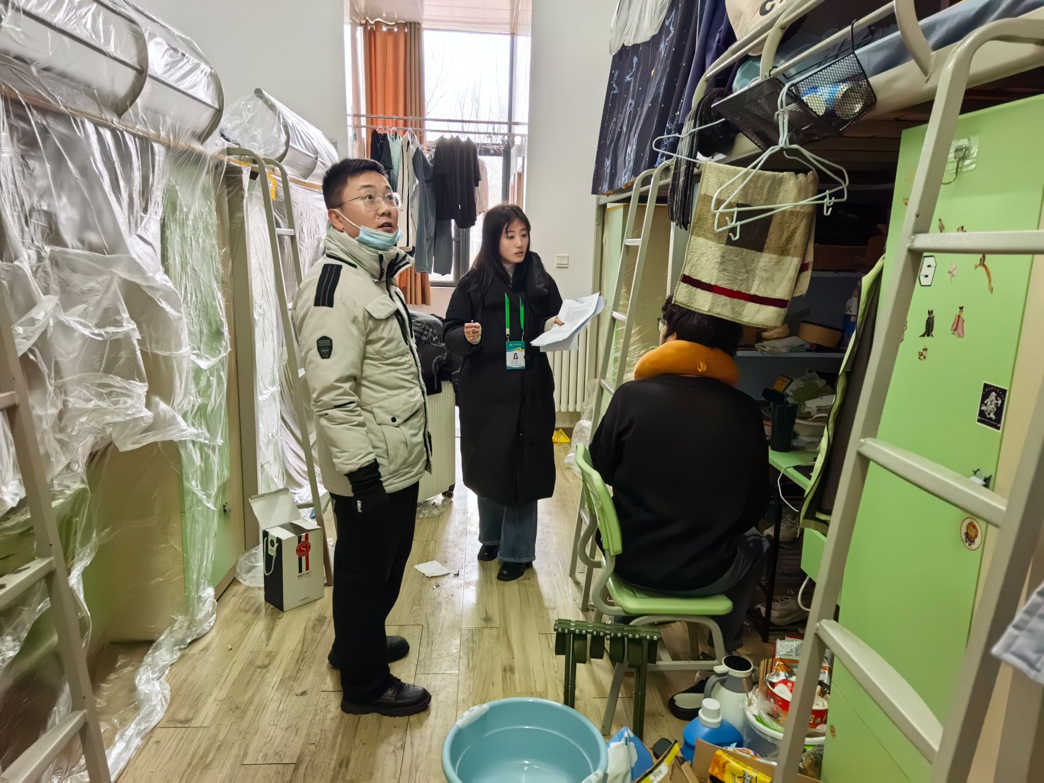 走访过程中,也处处体现着老师们对学生的细心关怀。对部分同学离校时未及时收纳的衣物,辅导员老师主动帮忙整理收好;发现有易腐坏物品,并进行了妥善处理。此外老师们耐心提醒未离校同学离校时注意交通安全,乘坐正规车辆,不搭“黑车”、超载车,提前把行程、车次告诉家长和辅导员,出行上路遵守交规,近期雪天路滑更要注意出行的安全。