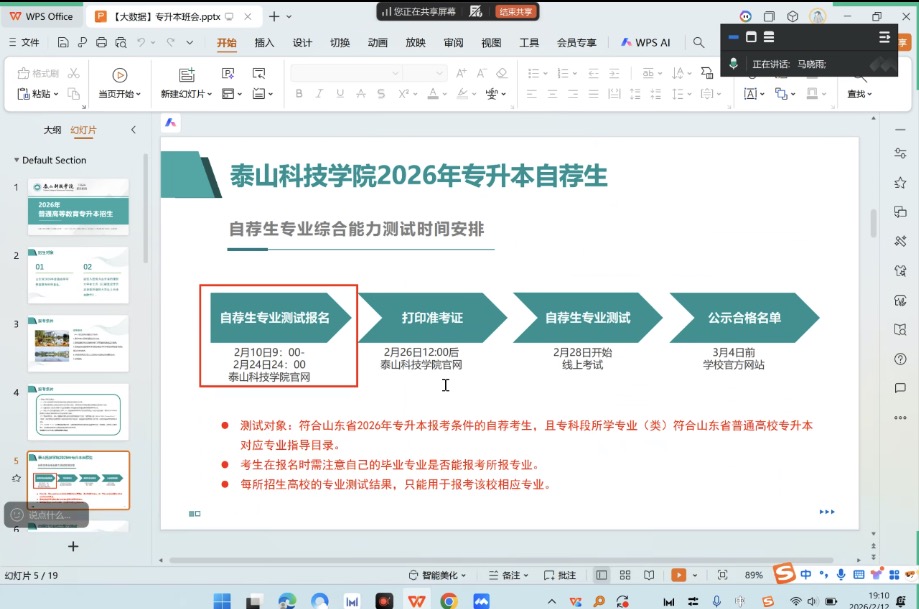 为帮助大数据学院学子全面了解2026年专升本自荐考试政策、明晰考试流程、科学规划升学路径,2月12日,大数据学院紧扣学生实际需求,创新采用“分散动员+集中宣讲”相结合的工作模式,全面铺开泰山科技学院2026年专升本自荐考试宣传动员与政策解读工作,以全覆盖、精准化、高效率的服务,为学子专升本备考与报考保驾护航。