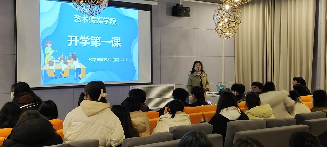 新学期,新面貌,新起点,艺术传媒学院宋宏越老师、刘倩倩老师于2023年2月19日19:00在东岳书院119以及第三教学楼104教室中开展开学第一课主题班会。会议围绕无烟校园建设、心理健康教育、学风建设等内容。