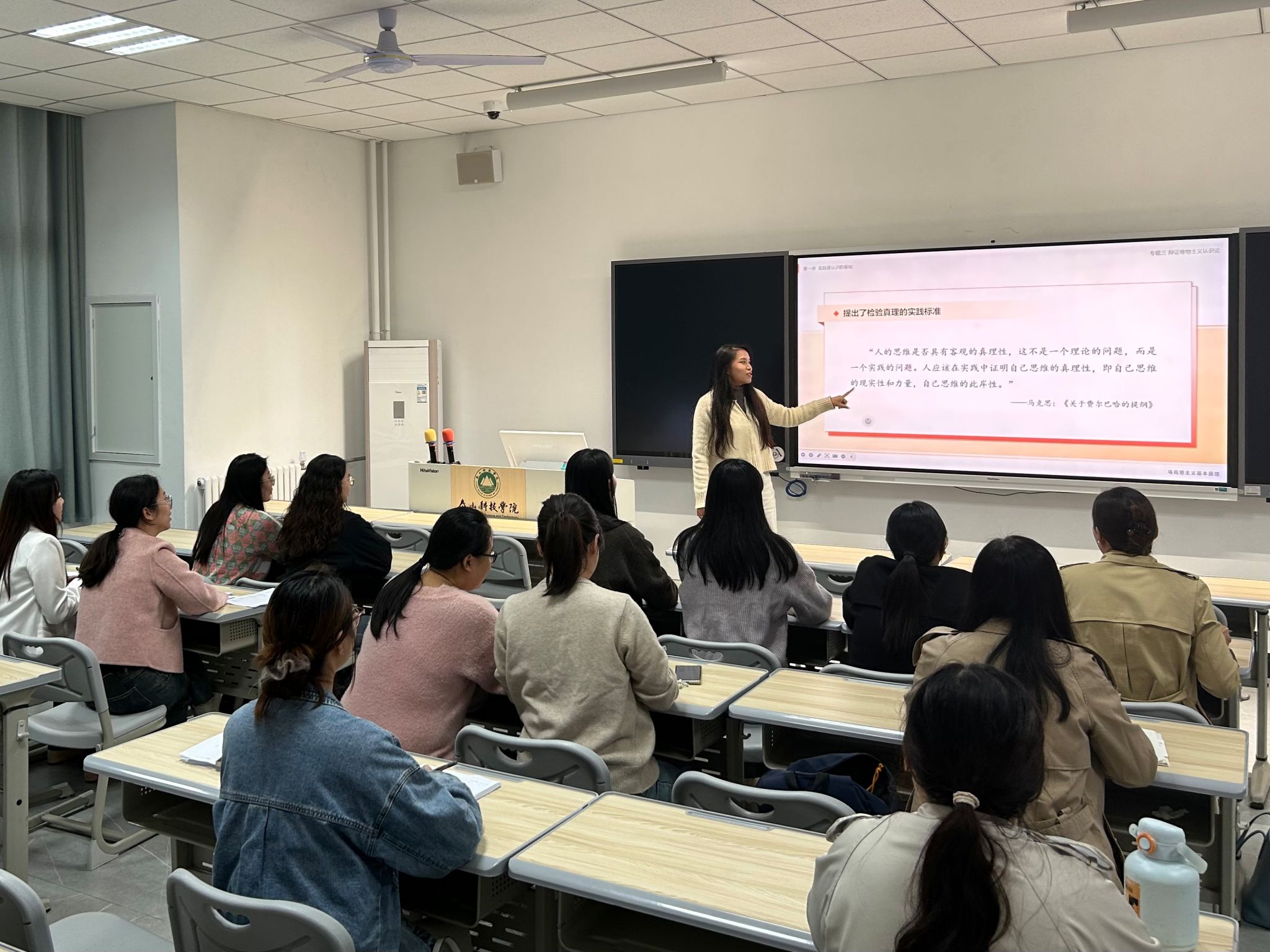 本次备课会聚焦教材第二章“实践与认识及其发展规律”的核心内容。备课环节中,汪欢欢、魏晓玲老师率先进行了教学展示。她们紧扣备课内容,深入剖析本章教学重点与难点。以时事政治为切入点,讲解教学思路,为后续教学提供了方向。随后,与会教师结合自身教学经历与学生实际,围绕教学问题展开了交流。大家积极分享各自教学设计、精心选取的教学案例以及灵活多样的课堂互动方式。