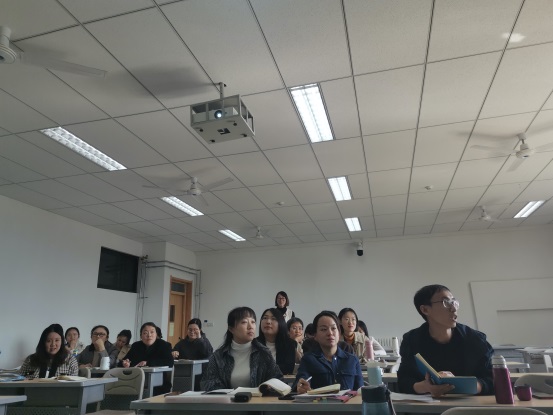 在“评”的过程中,全体教师积极参与,讨论热烈。每位教师从个人感受和教学经验出发,分别对两位老师讲课的优缺点表达了观点和看法。大家纷纷表示,两位教师专业基础扎实,课堂知识层层推进,课堂互动效果不错,形成了自己独具特色的风格,是我们学习的榜样。每位教师也根据自己的教学实践,提出了针对板书设计、课程层次、个人表达等方面的建议。