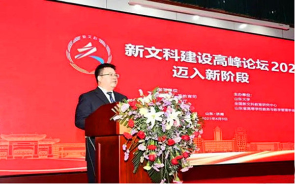 4月9日,由教育部高等教育司、山东省教育厅指导,山东大学、全国新文科教育研究中心和省高等学校教务与教学管理学会共同主办的“新文科建设高峰论坛2021:迈入新阶段”在济南举办。学校校长助理、教务处处长智英斌、行政管理学院副院长丁海奎、思想政治理论教学研究部副主任解嵘、教务处教务科科长张大磊代表我校参加了此次论坛。论坛的召开,标志新文科建设迈入新发展阶段。