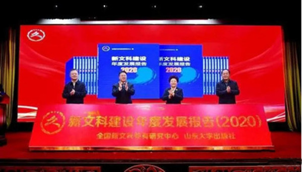 会上,由山东大学出版社出版的《新文科建设年度发展报告(2020)》,在论坛上举行了新书发布仪式。宋毅、白皓、樊丽明、山东大学出版社社长陈斌共同为新书揭幕。《报告》共分为起航之声、专家观点、典型案例和大事记四个部分,汇集2020年新文科建设工作会议中重要文献资料与学术观点,整理收集了十余所高校新文科建设理论研究与实践探索的成果。