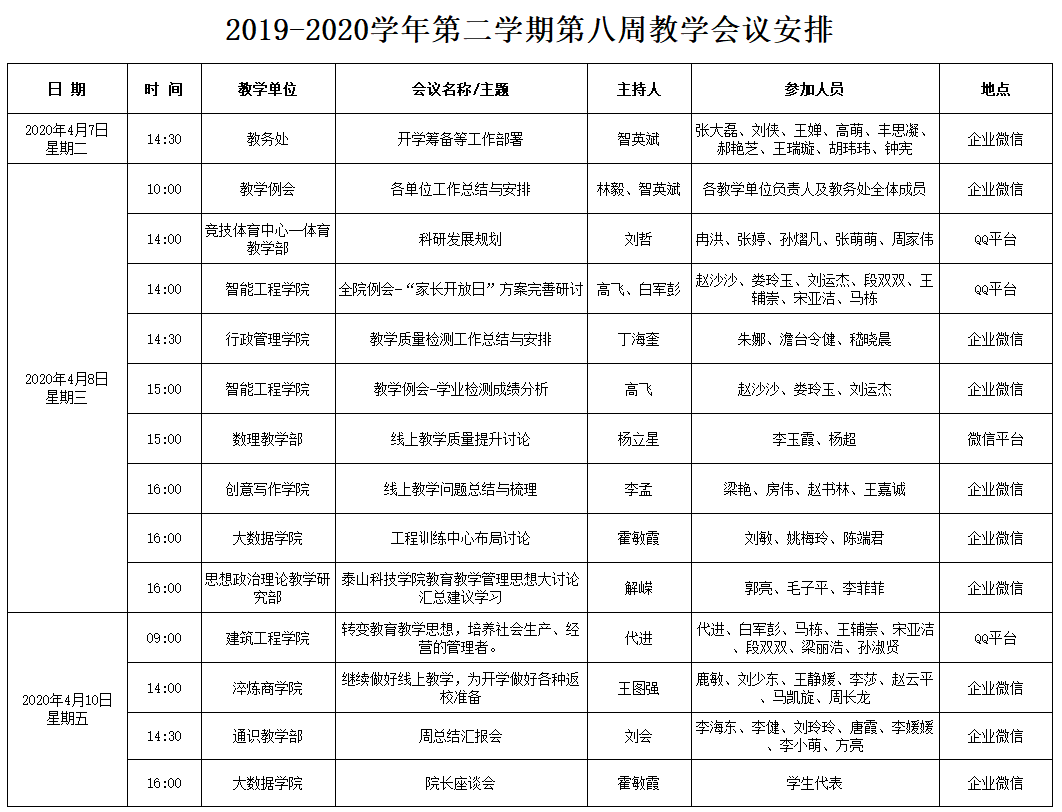 2019-2020学年第二学期第八周教学会议安排