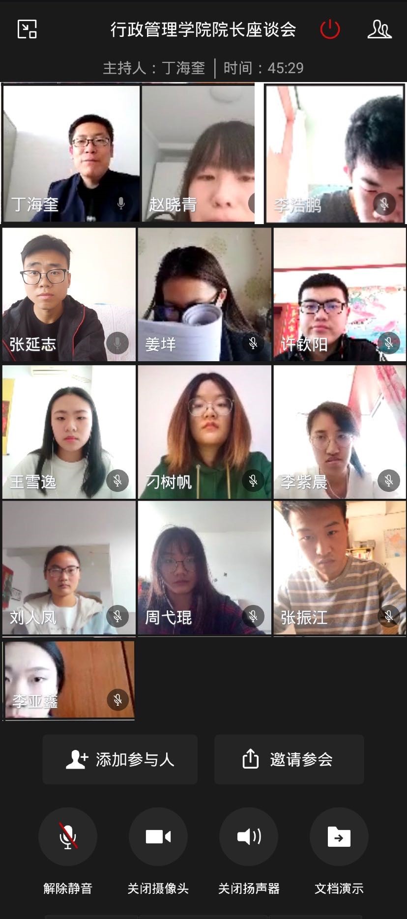 4月3日,“我与院长面对面”活动如约而至,行政管理学院副院长丁海奎、辅导员张康与6个班级的12名学生代表进行了网络视频座谈交流,详细的了解了同学们疫情期间的学习、生活情况,听取他们对学院工作的意见和建议,座谈会成为师生敞开心扉的一次“家常谈心”。