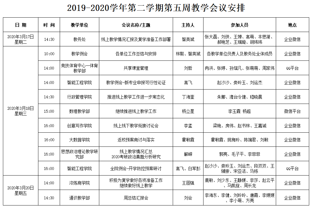 2019-2020学年第二学期第五周教学会议安排