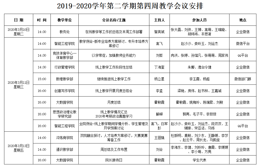 2019-2020学年第二学期第四周教学会议安排