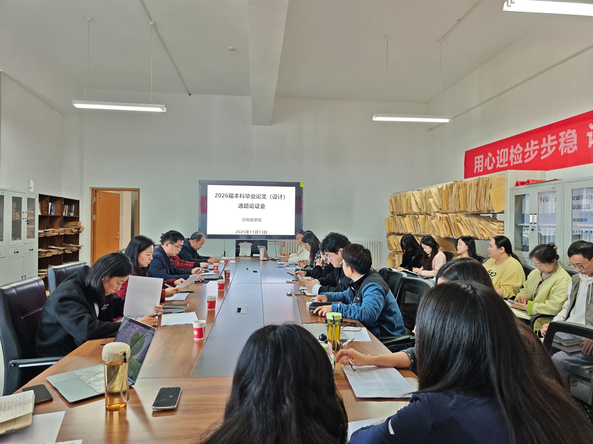 为进一步规范2026届本科毕业论文(设计)选题工作,提升论文质量与学生学术研究能力,持续推进学校“教育教学三提三创”主题年活动。11月13日,泰山科技学院淬炼商学院特邀山东农业大学的袁建华、宋晓丽及张秀芳三位教授、山东英才学院殷永生副院长、潍坊科技学院李宁博士进校,各教研室骨干教师参加,共同召开本科毕业论文(设计)选题论证会。本次论证会聚焦财务管理、会计学、人力资源管理、工商管理、市场营销、电子商务、金融学七大本科专业,为毕业生论文创作筑牢根基,助力学术实践提质增效。
