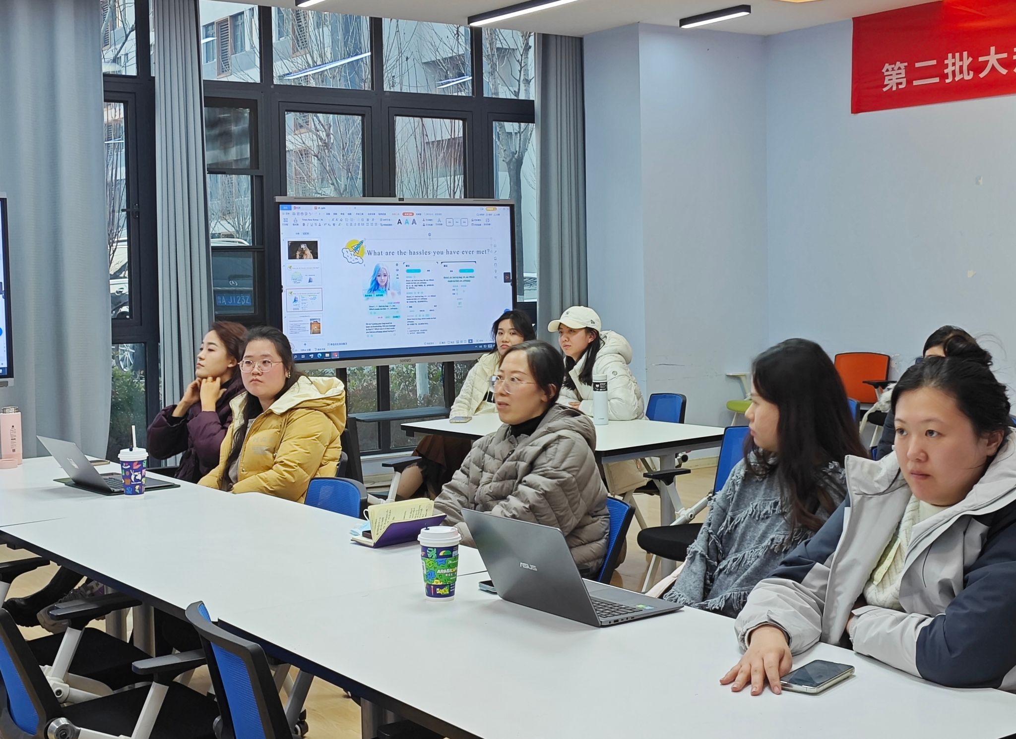12月5日,李莹老师在《生命伦理与人类发展》的“合成生物科学甄别战”章节教学中,以“哪吒重塑肉身”与“莲藕造骨”科研成果对比引入主题,采用“闯关式”课堂结构,通过“女巫的毒药”互动活动,引导学生总结科学信息甄别法则,凸显培养理性公民的教学目标。观摩教师称赞李莹老师的课程内容衔接自然、案例运用得当,牛志萍院长肯定其进步的同时,也提出优化教姿教态、材料规范性等改进建议。杨美丽老师在《大学英语3》的《The Surprising Purpose of Travel》教学中,以“旅行翻车”短视频导入,结合AI语音技术辅助发音练习,通过合作探究、情景表演等形式,引导学生理解文本“先抑后扬”的写作策略,实现语言学习与技术辅助、情感表达的深度融合,其创新的教学形式与扎实的教学功底获得在场教师一致好评。