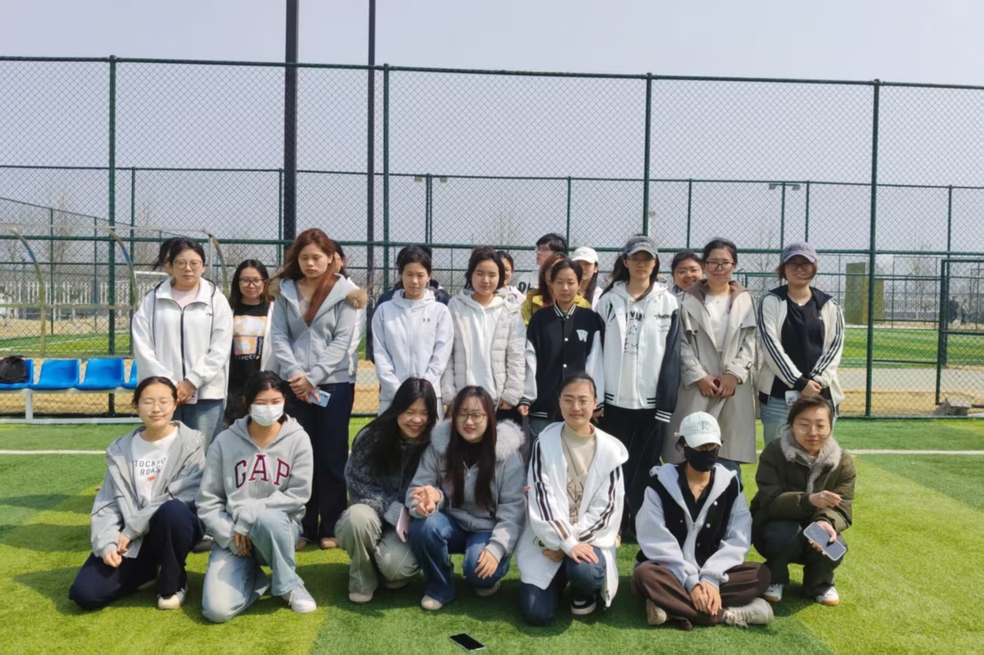 第三个项目“同心共立”看似简单,却是最考验信任与协作的一关。同学们自由配对,两人背对背坐下,双臂相扣,需要依靠互相背部支撑的力量同时站起来。起初不少组合尝试失败,但大家没有放弃,不断调整姿势互相鼓励。当一对对组合成功站立时,现场响起阵阵掌声。这个项目让同学们深刻体会到,只有彼此信任、步调一致,才能共同克服困难。