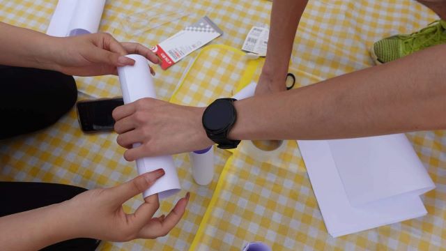 将薄薄的A4纸变成造型各异的纸结构,用简单的纸张配合胶水,打造起创意的青春之桥,在不到一个小时的时间里,小组成员们融合创新与智慧,感受建桥的乐趣,探索承重的奥秘,通过裁剪,拼接,合体一步步完成了属于自己团队的纸桥制造。