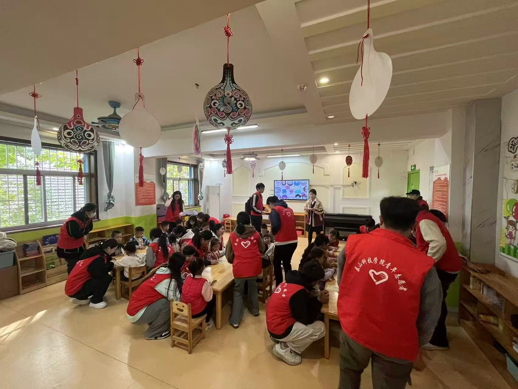 幼儿阶段是成长发育的关键时期,不仅需要家庭和幼儿园的悉心呵护,也需要社会各界的关注与陪伴。当前,多数幼儿园师资力量集中于日常教学与安全管理,在开展趣味拓展、个性化互动等活动时,常面临人手不足、形式单一的挑战,难以充分满足幼儿多样化的成长需求。志愿服务作为连接社会力量与公共服务的重要纽带,能够为幼儿园补充人力支持,注入新鲜活力。同时,此类活动也是传递“奉献、友爱、互助、进步”志愿精神的有效载体,有助于引导社会大众关注学前教育发展,为幼儿营造更温暖、多元的成长环境。为此10月29日泰山科技学院青年志愿者协会组织同学共同开展“童心同行 志愿相伴”主题志愿活动,来自学校的20余名志愿者走进幼儿园,用实际行动去陪伴儿童,送去欢乐与陪伴。