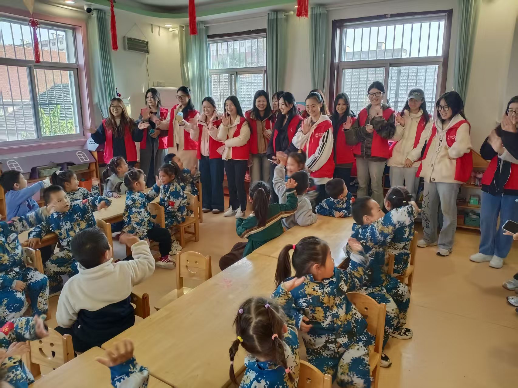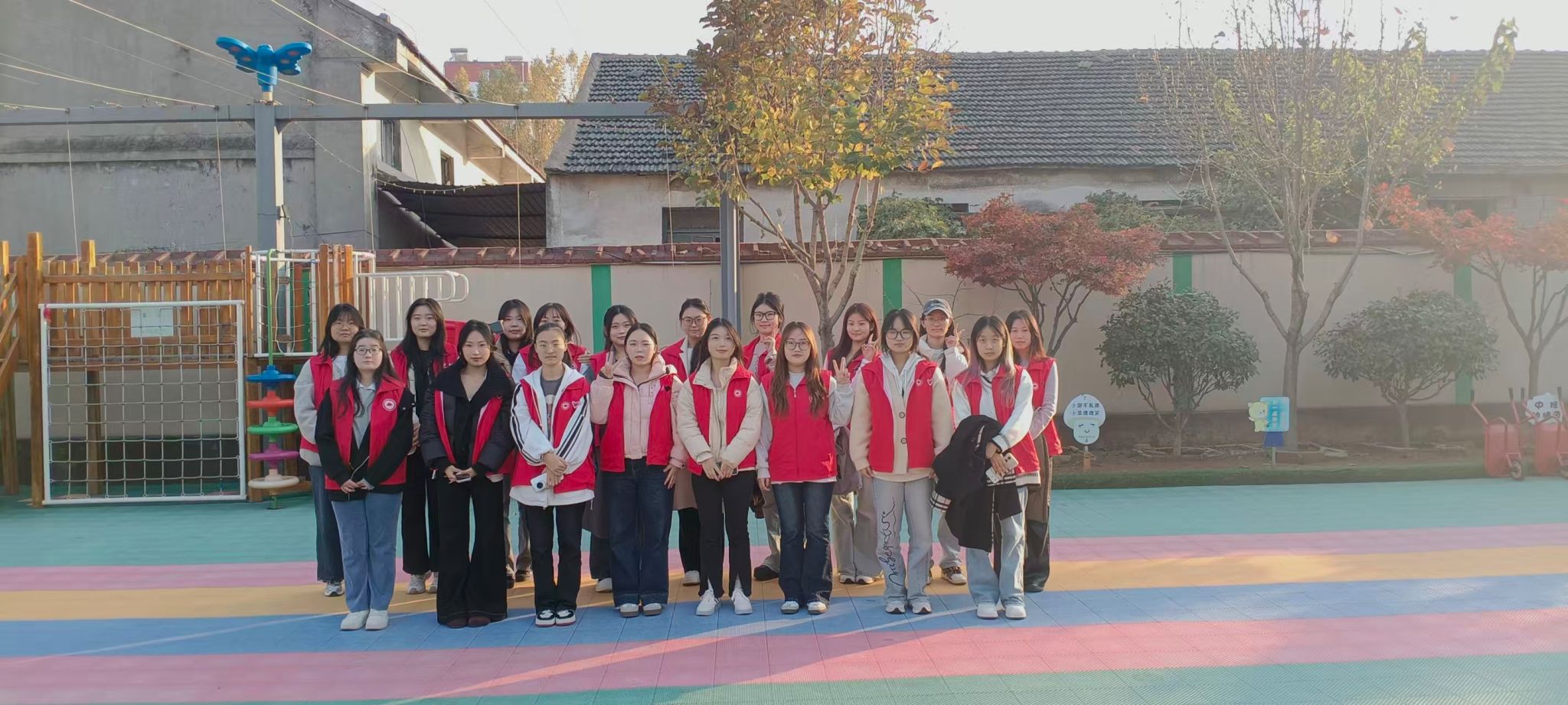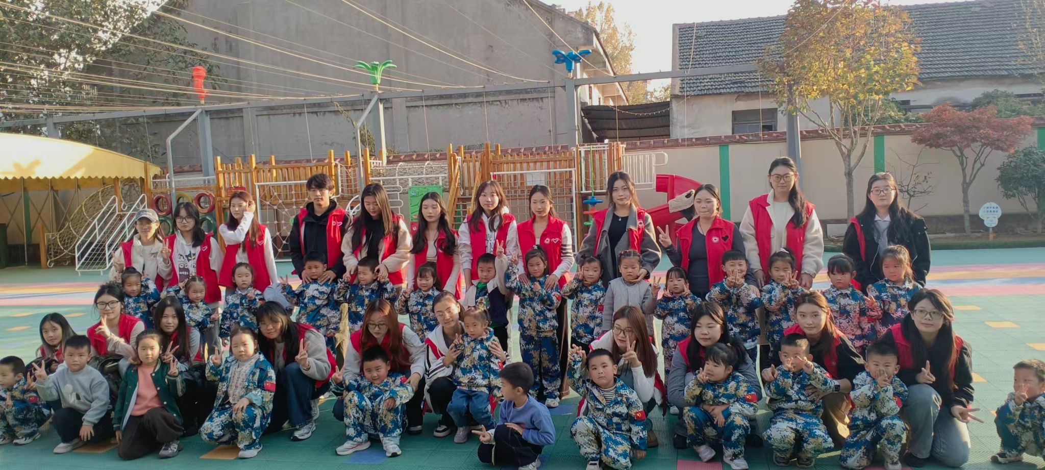 为践行志愿服务精神,传递青春温暖,近日我校组织 20 余名大学生志愿者走进山口镇领航光谱幼儿园,开展以 “童心同行,爱满校园” 为主题的趣味志愿活动。志愿者们通过 “丢手绢”“老鹰抓小鸡” 等经典童年游戏,与孩子们共度了一段欢乐难忘的时光,用实际行动书写青春担当。