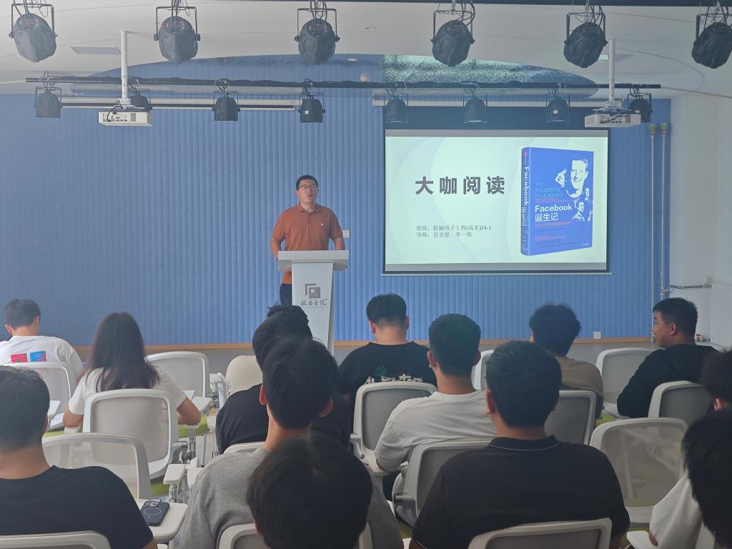 古人云:“书中自有黄金屋,书中自有颜如玉。”在书籍的世界里,我们能穿越时空,见证不同时代的精彩故事,汲取前行的力量。为进一步丰富同学们的知识储备,培养创新思维与创业意识,智能工程学院持续推进“信息产业大咖传记阅读计划”,在范克健和李一明两位老师的组织下,机械电子工程(高本)24-1班的同学于9月10日开展了以《facebook诞生记》为主题的阅读分享活动。