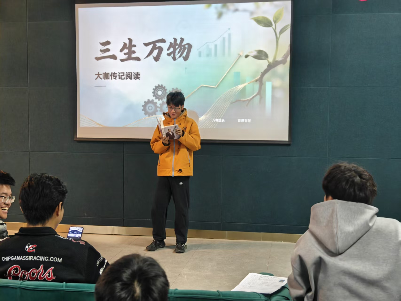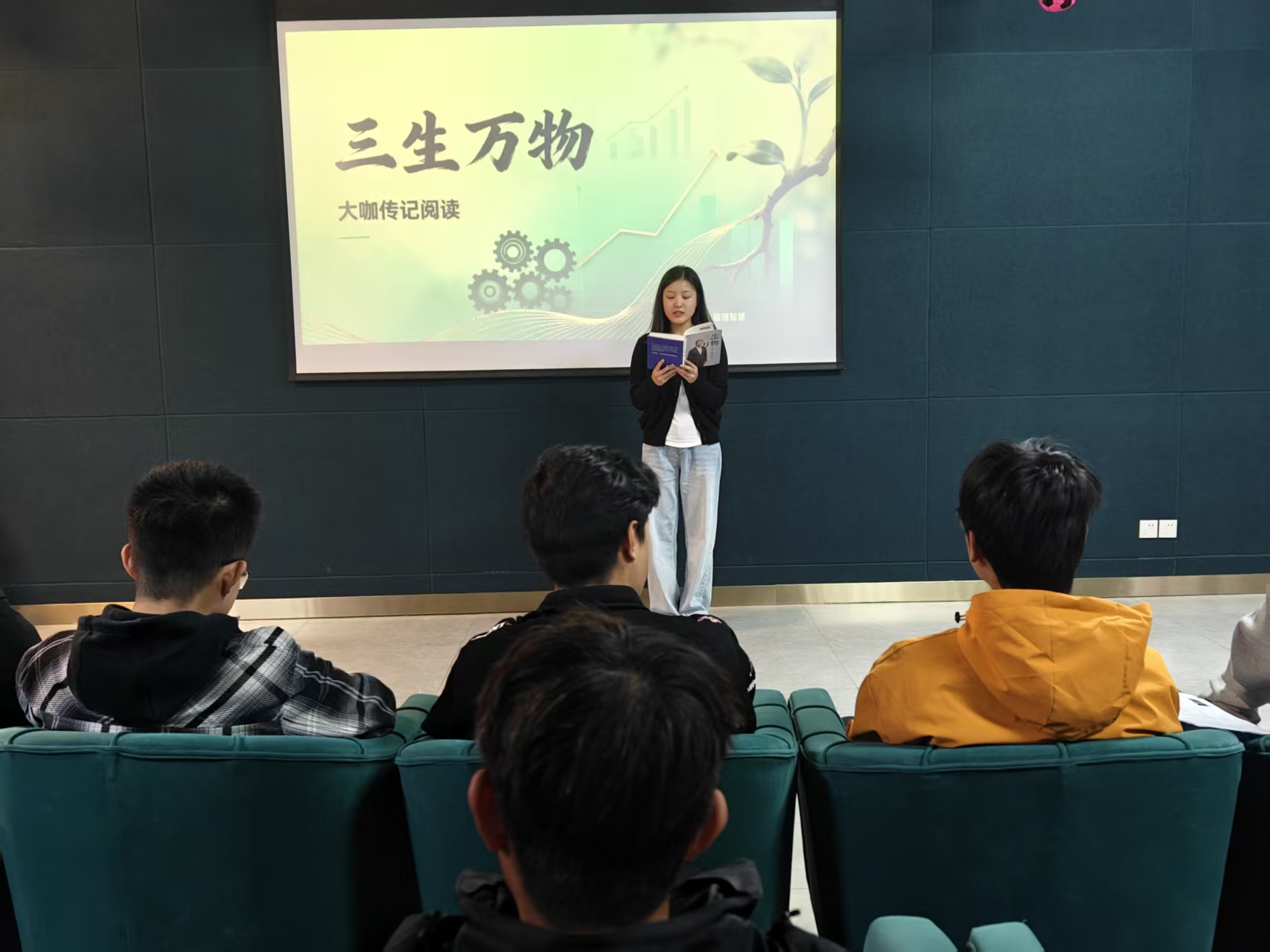 书香致远,墨卷至恒。为营造浓厚的阅读氛围,深化学生的商科思维,智能工程学院积极响应“信息产业大咖传记阅读计划”。在孟珩和马芸慧两位老师的组织下,电气自动化技术(专)25-2班的同学们于11月7日齐聚瞻岩书院银河剧院,开展大咖传记阅读分享活动,在与智者的“对话”中,收获知识与成长。