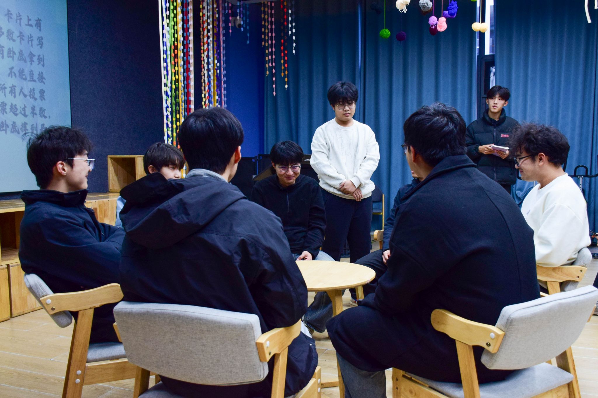 最受期待的游戏环节如期开启,现场同学自由组队,四人一组围坐成圈,一场“英语单词谁是卧底”大战火热展开。主持人宣布规则:“好人拿到相同英语单词,卧底拿到相近单词,大家轮流用英语描述单词含义,最终共同找出卧底!”