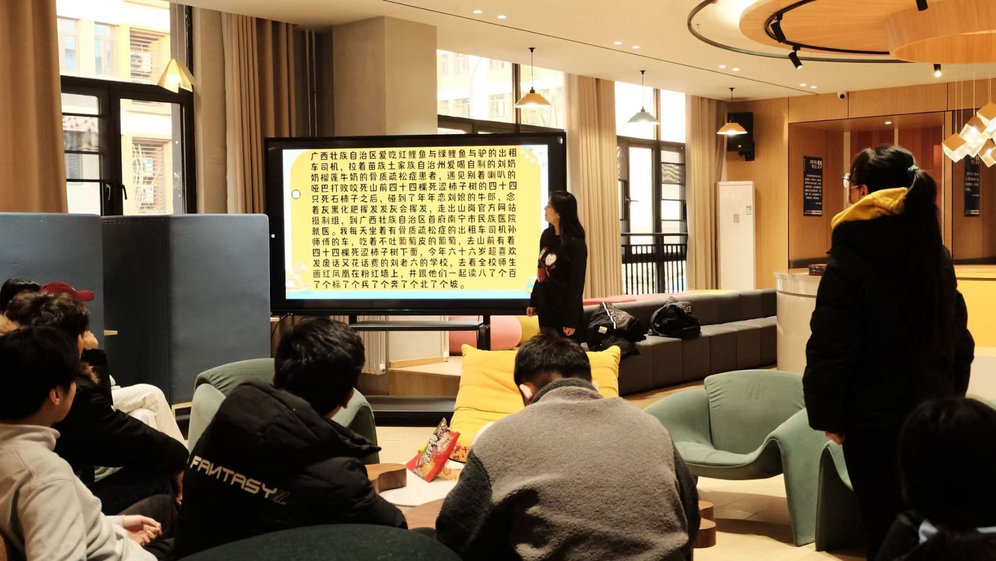 12月18日活动当天“默契破局 青春开麦”主题活动在育英书院113正式拉开帷幕。班内同学齐聚现场,团支部书记和志愿委员担任主持人详细介绍活动流程与游戏规则,强调此次活动旨在通过趣味互动拉近同学距离、培养团队默契,现场瞬间洋溢着期待的氛围。