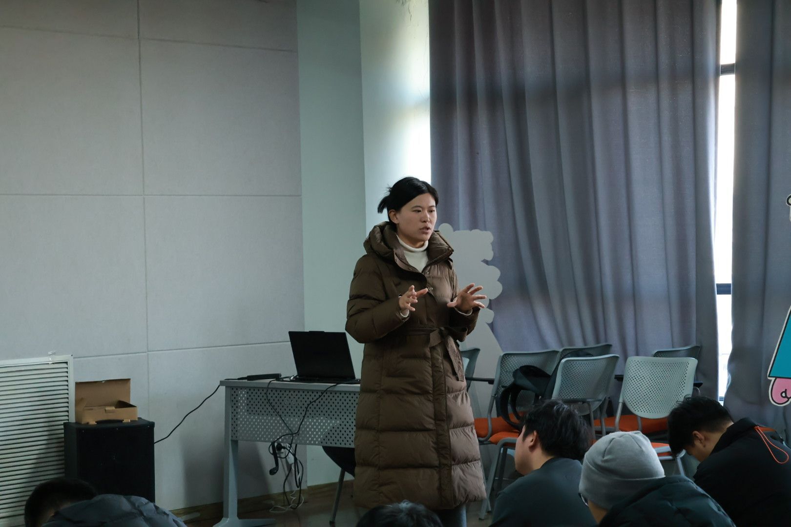 在情绪问题讲解环节,马新新老师针对冬季易出现的情绪低落、焦虑、失眠等期末考试压力的心理问题的产生原因展开分析,分享了运动调节、情绪调节、兴趣培养等简单实用的方法,同时详细讲解了心理咨询热线、心理咨询室预约等寻求心理支持的正确途径,让同学们对心理健康问题有了更科学的认知。马老师特别强调,心理健康与生理健康同样重要,鼓励同学们摒弃对心理问题的病耻感,学会接纳自我。她指出,冬季的情绪波动往往是身体在向我们发出的“求救信号”,而非软弱的表现。通过这次讲座,不仅有效缓解了同学们在期末季与寒冬叠加下的心理压力,更在校园内营造了一种温暖、包容的心理互助氛围,为同学们以更积极饱满的状态投入到冬日的学习与生活中注入了强大的“心动力”。