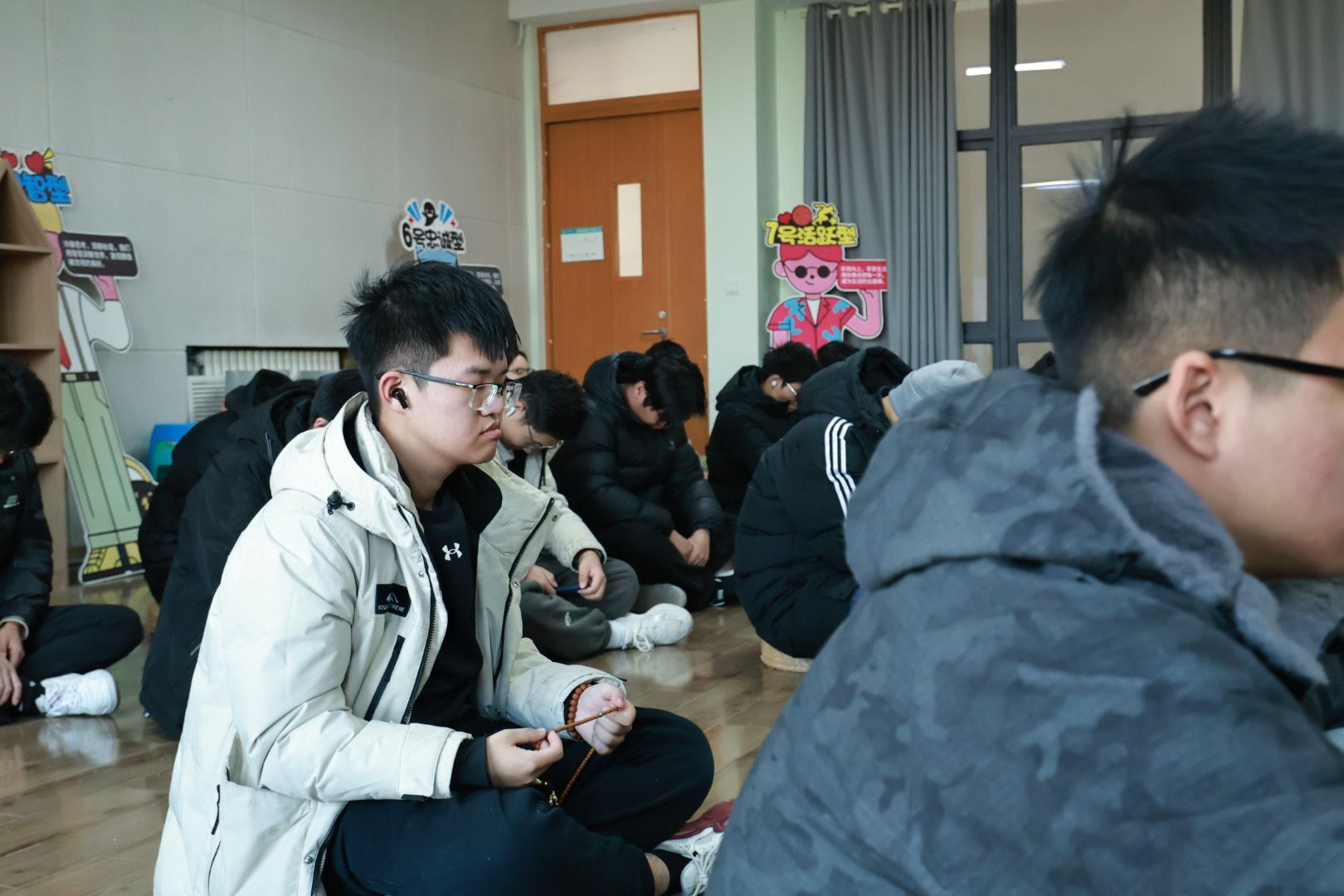 第二个环节是神秘的冥想,活动开始,老师向同学们介绍了如何在蒲团上用舒服的方式让思想沉入大脑,用温馨的音乐加强同学们的感受。冥想过程中,老师引导大家想象自己身处静谧的森林或温暖的海边,将备考的压力化作云朵,随呼吸慢慢飘散。短短几分钟的冥想,让原本浮躁的现场变得分外安静,只听得见轻柔的呼吸声。当冥想结束,同学们缓缓睁开眼睛,不少人露出轻松的神情,有同学感慨:“一开始还觉得冥想很神秘,尝试后才发现,跟着引导调整呼吸,真的能让紧绷的神经放松下来。”在倾诉与倾听中梳理情绪;在小组互动环节,成员们围绕“学业困惑”“人际交往”等主题轮流发言,通过他人视角获得新的启发,指导老师则全程陪伴引导,适时给予共情回应与建议,帮助同学们更清晰地觉察自我、接纳自我。