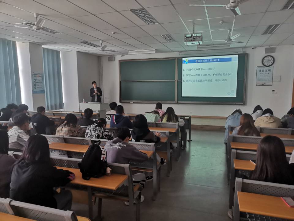 为改变大学生进入职场后由于自身缺乏相应的职场知识与技能,出现不适应职场生活的情况,淬炼商学院社团服务部于2021年4月16日在教学楼306教室举办职场锻造计划第七期,本次活动邀请了淬炼商学院专业任课教师宗振老师,宗老师曾担任交通银行泰安分行产品经理及新泰支行行长。参加本次活动的主要为即将面临就业走入职场的同学们,活动增加了他们对于的职场认知,也帮助他们确立了今后的择业就业规划。