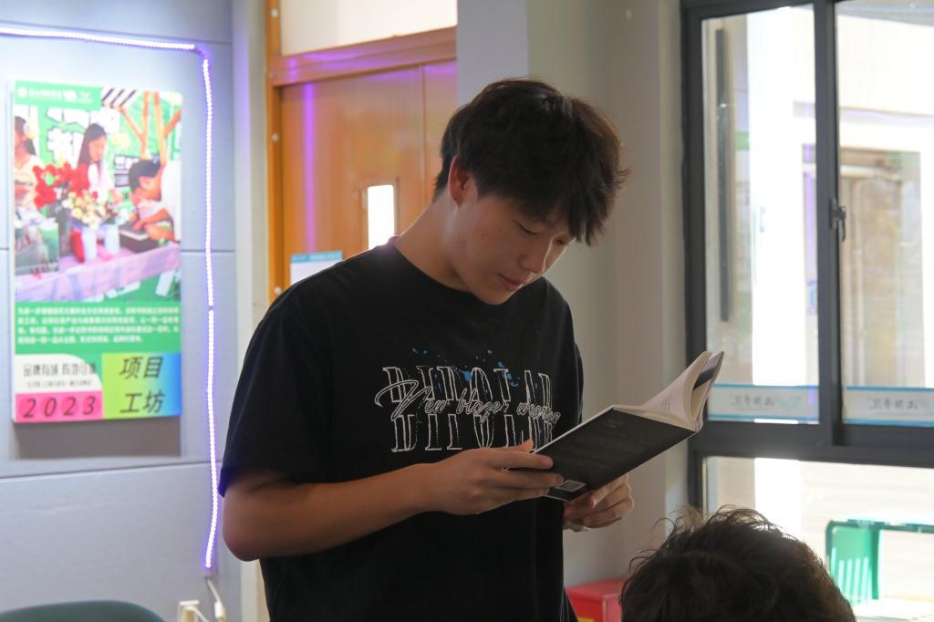 紧接着,同学们在浓厚的读书氛围中进行了两本书的阅读,现场也只剩下同学们的翻书声和记读书笔记留下的沙沙声。在二十分钟的沉浸阅读之后,围绕着《颠覆者:周鸿祎自传》和《王兴传》,同学们积极踊跃地分享着自己的阅读心得,也有很多同学提出了阅读时会遇到的问题,比如在阅读过程中如何静下心来、如何才能体会到读书带来收获等,于兹房老师结合同学们提出的问题分享了自己的经验,为大家做出解答,活动氛围也随之推向高潮。