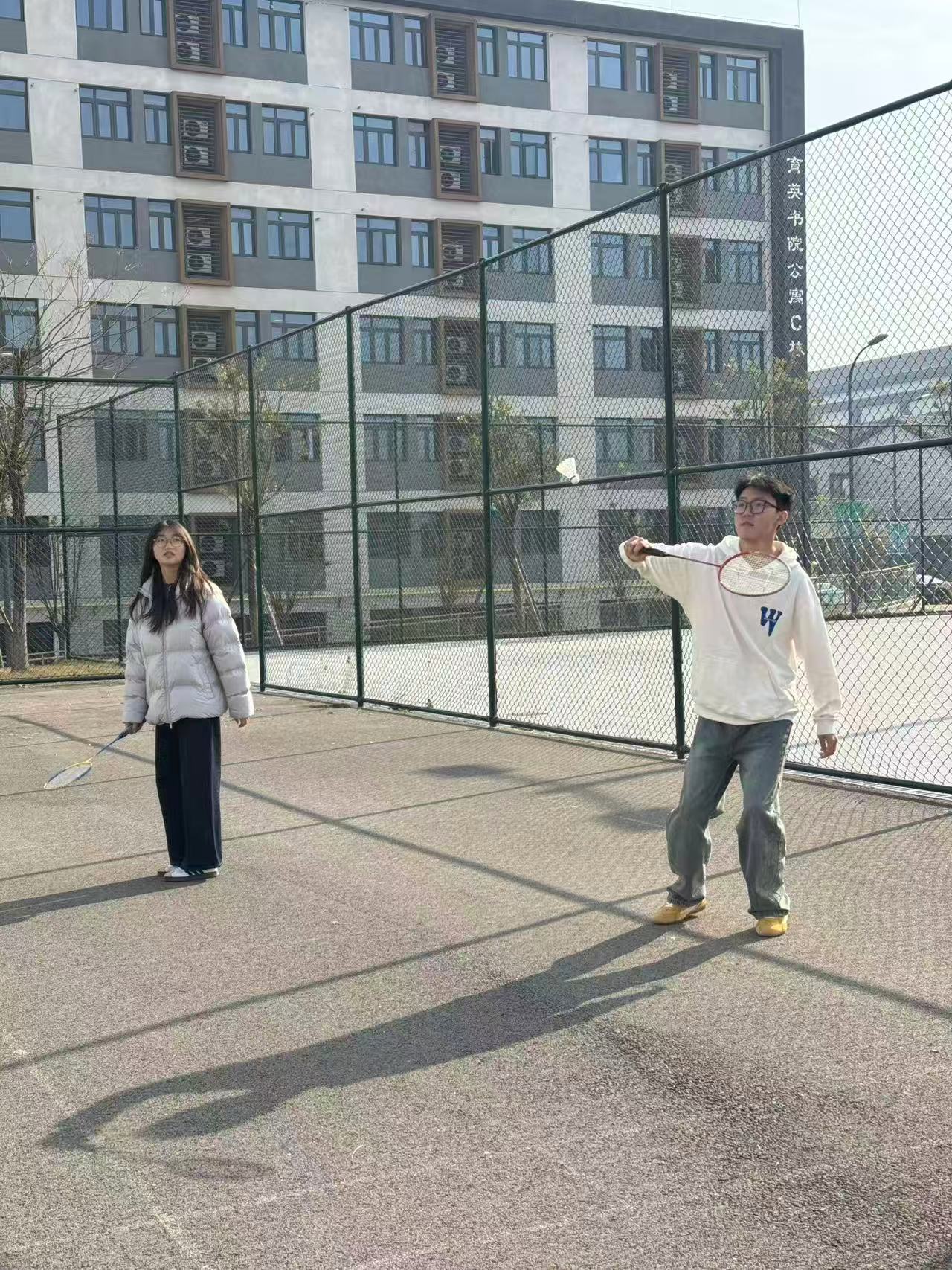 最后是轻度竞技赛,有羽毛球基础的同学自由组队,进行“3局2胜制”的双打对决。没有强制参与的要求,其他同学则在场边为选手们呐喊助威,现场氛围轻松又热烈。