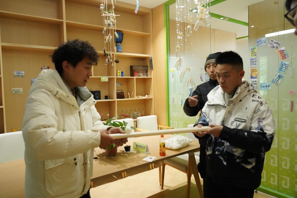 启程,百余位探险者们收获三枚精心设计的特制硬币和一份打卡攻略。大家可以通过挑战单手开瓶盖、单手解绳扣来获得额外的硬币。而硬币上的字句,正是通往各个神秘房间的线索。当你轻轻旋转、拼凑这些硬币,一句句神秘的话语逐渐显现,一扇扇通往奇幻房间的大门也悄然敞开。每个房间都充满了无限的创意与惊喜,让同学们在世界里尽情感受交流的魅力与温暖。