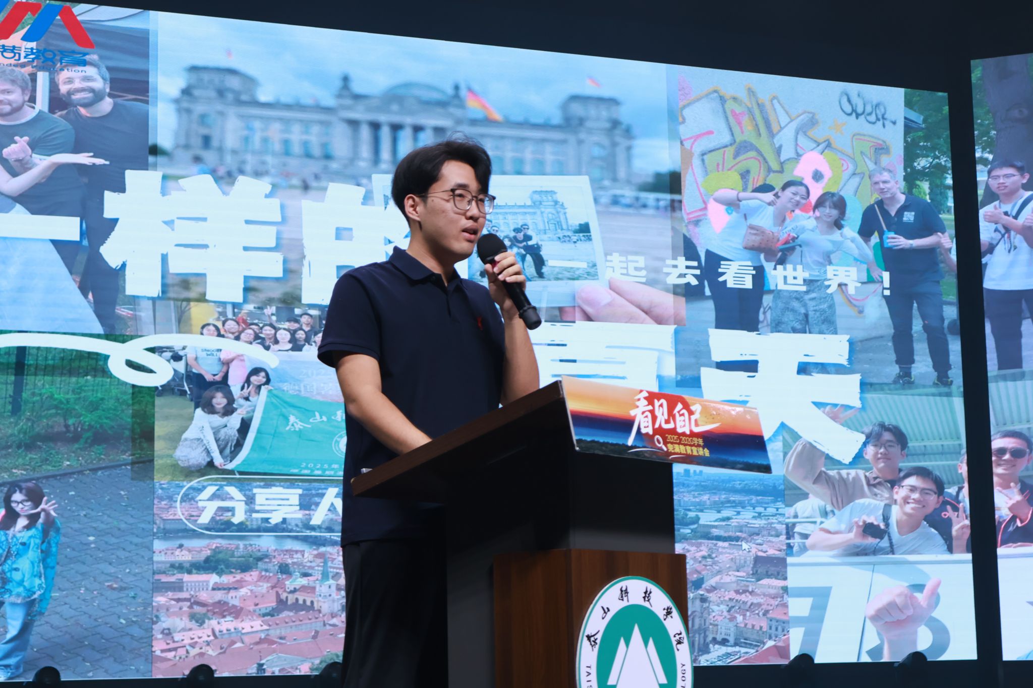 此外,学院特别邀请2025年暑期海外研学项目的带队张凡老师以及参加此次研学的三位同学,分别从不同的角度向同学们分享了自己的亲身收获。张凡老师以“德国你得去”为主题进行了分享:此次的研学能够走出办公室,走进不同的文化,去重新审视自己的价值以及作为一名专业教师除了专业知识以外能够给同学们带来什么,离开熟悉的环境,面对不同的文化,可以更好地理解自己认识的世界,并鼓励同学们把握机会,去了解体验多元的文化。