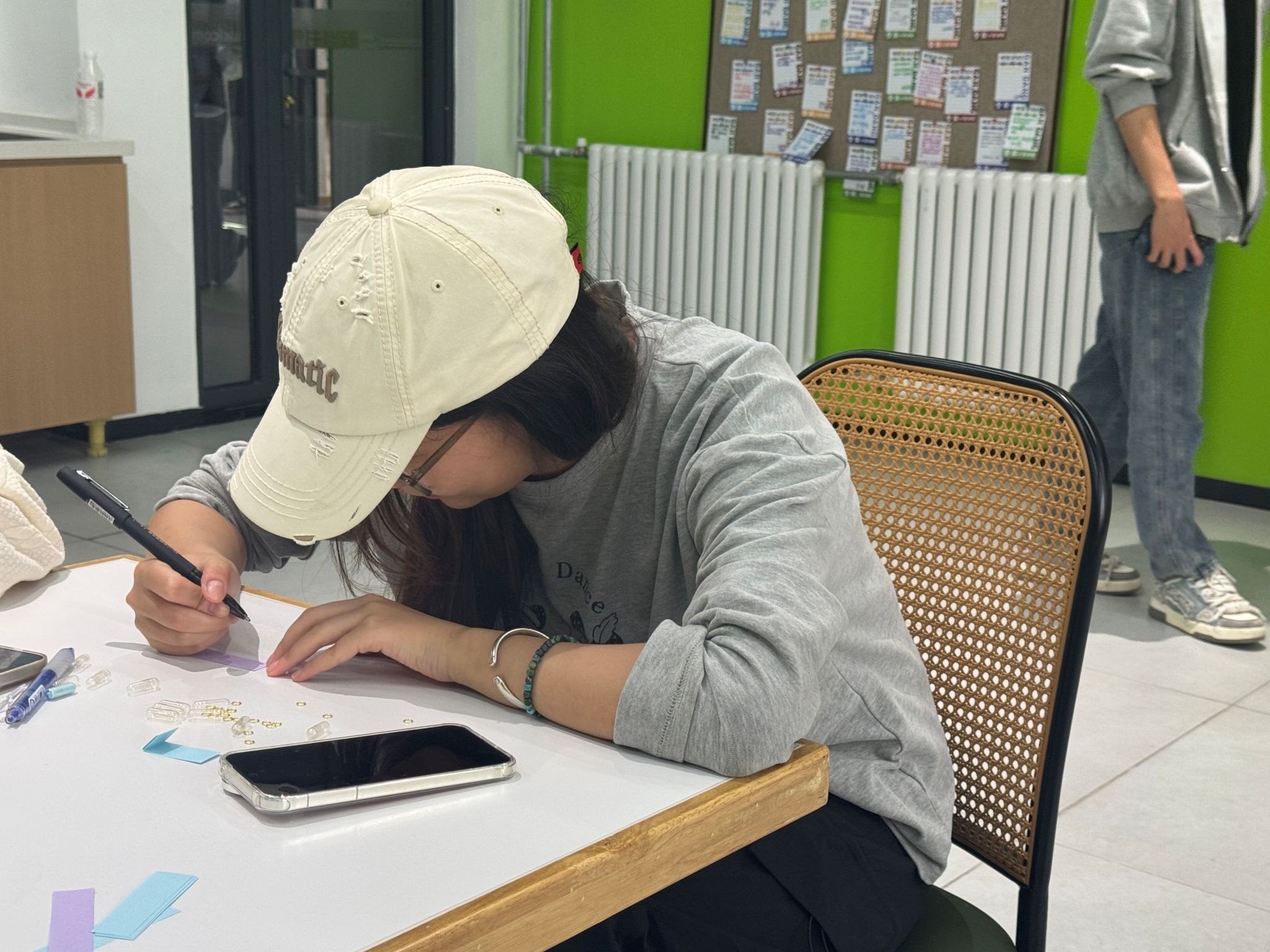 下午三点,阳光透过书院的玻璃窗,在地面洒下斑驳光影,参与者们带着对活动的好奇陆续到场。为打破初遇的陌生感,活动正式开始前,主持人精心设计了“击鼓传花”破冰小活动。在分发便签纸时,主持人笑着引导:“不用顾虑格式,不用斟酌辞藻,只需要写下一个最能代表你当下状态的词语,它可以是‘期待’‘希望’这类心境,也可以是‘开学’‘忙碌’这类日常。”