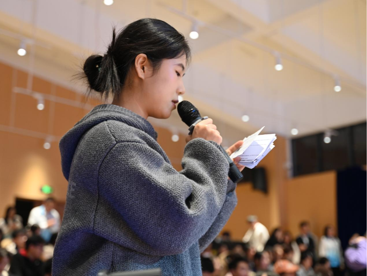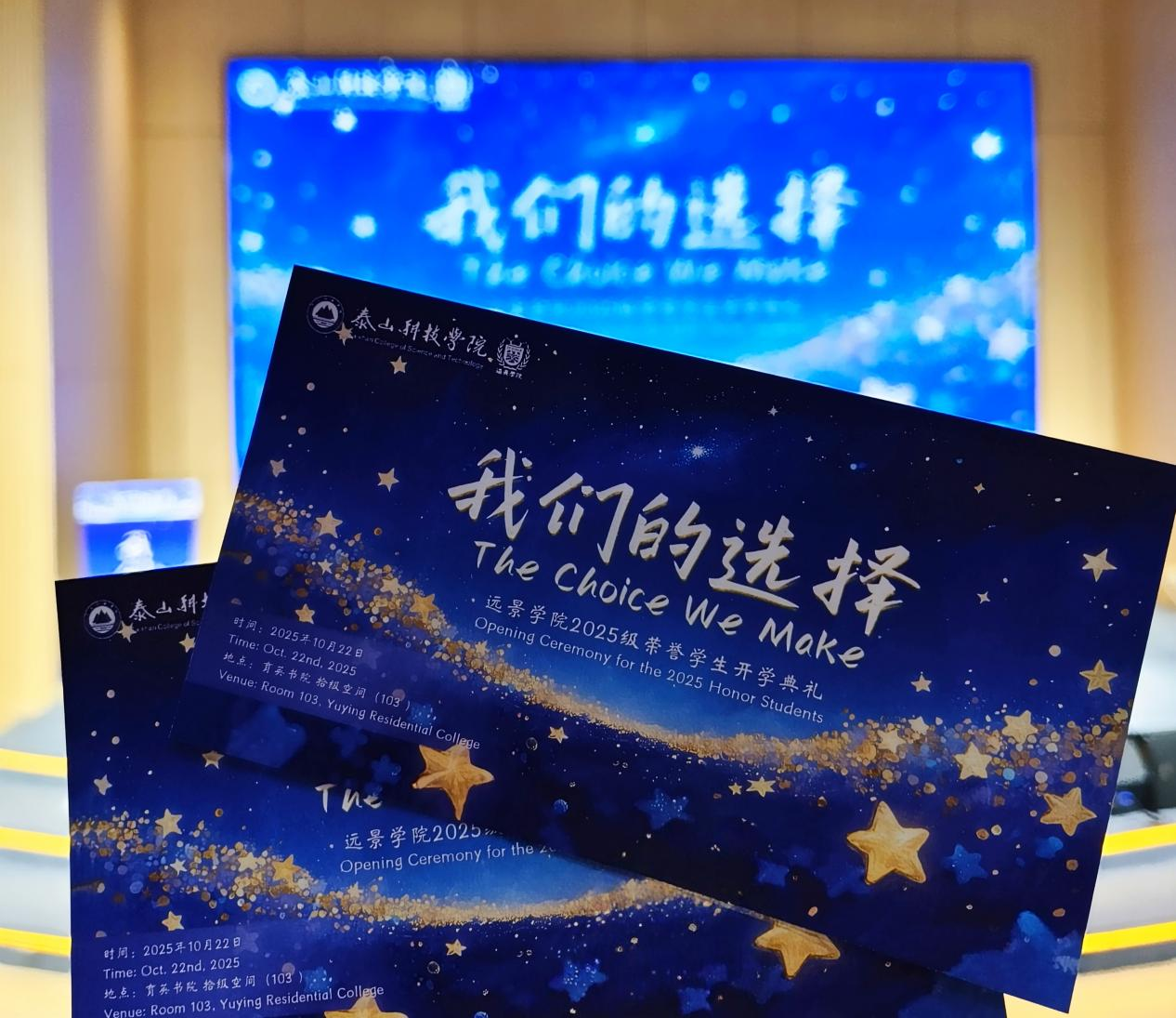 暖场视频《我们的选择》带我们“穿越”了一次——从初高中校园一路走到泰科,记录了一步步迈向大学新生活的真实心情。视频结束的瞬间,2025级荣誉学生张巍泷同学的小提琴声温柔响起,中英文主持人梁左航和邹琪正式宣布:“欢迎登船!Welcome aboard!”——我们的远景之旅,正式出发!