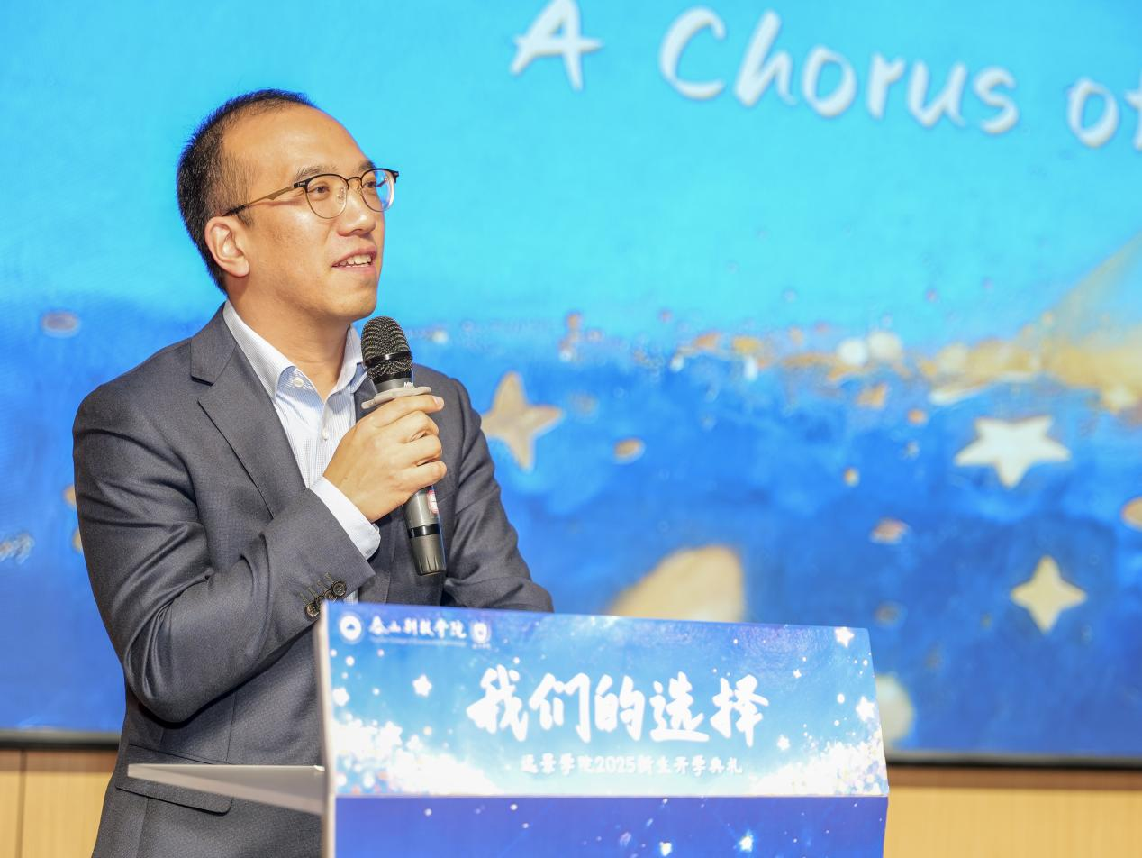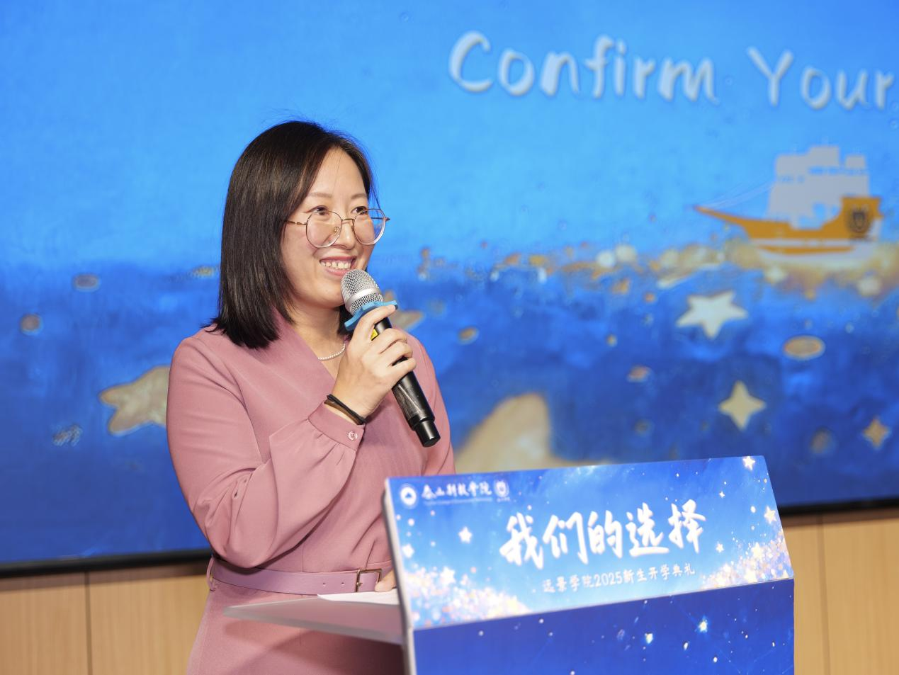 远景学院院长牛志萍宣读了录取通知,欢迎123位新同学加入远景大家庭。她向新一届荣誉学生们表示祝贺,正是每个人那份坚定的选择,让今天的故事得以开场。并期待所有同学在这片新天地里勇敢探索、尽情成长,让独特的个人光芒在此交相辉映,共同写下这场“双向选择”后更为精彩的篇章。