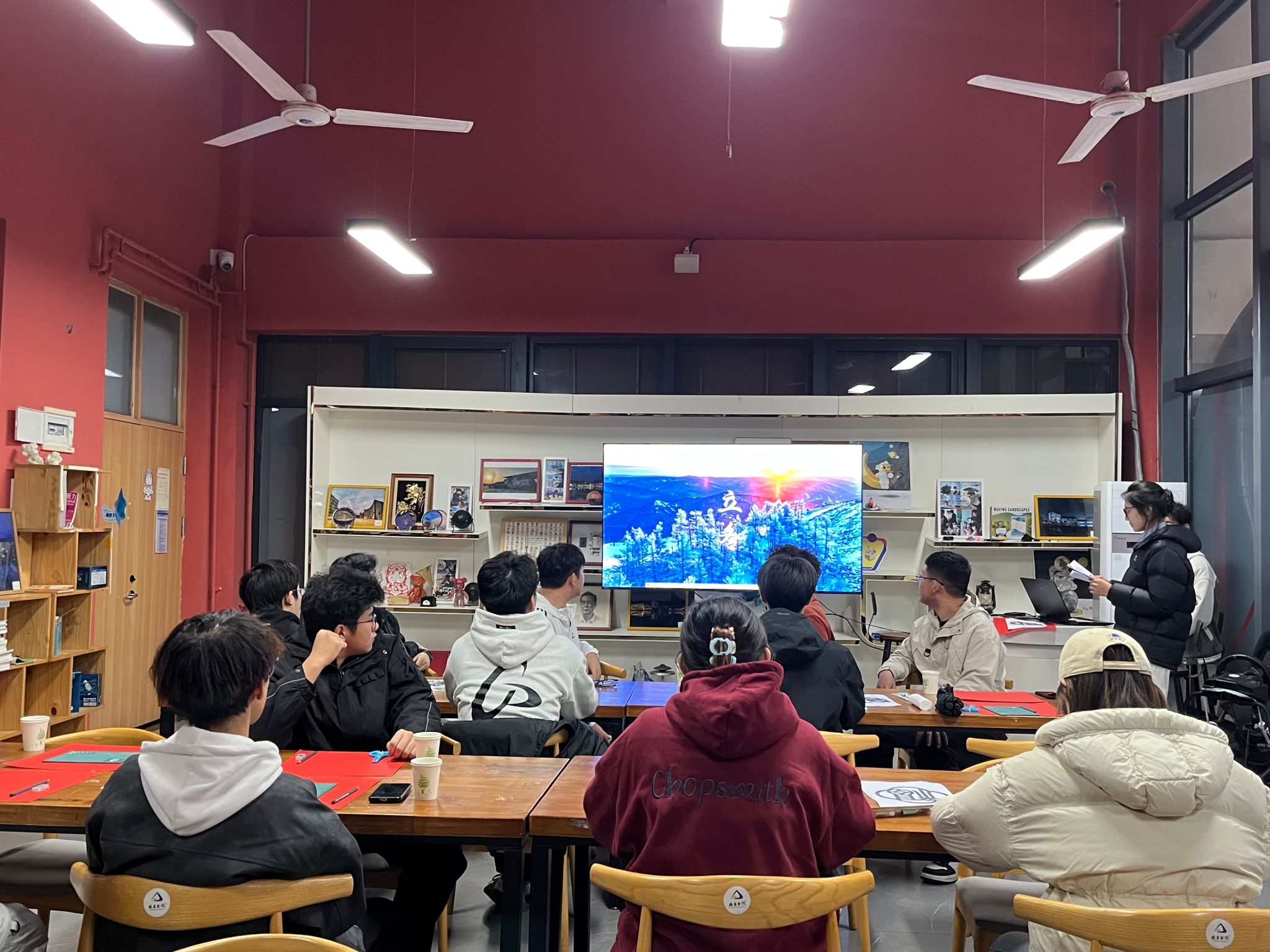 来到“立冬食俗分享”环节,现场气氛一下子热闹起来。南北方的同学纷纷化身“风俗讲解员”:北方“立冬不端饺子碗,冻掉耳朵没人管”的俏皮谚语里,藏着饺子的暖意与吉祥;南方一碗热腾腾的汤圆、一杯温补的黄酒,则包裹着对团圆与温暖的向往。你一言我一语,家乡的味道在话语间弥漫,文化的认同在笑声中传递。而“补冬”养生知识的融入,更把“秋冬养阴”的中医智慧带进现实,让大家明白:原来节气不止是文化,更是贴近生命的生活艺术。