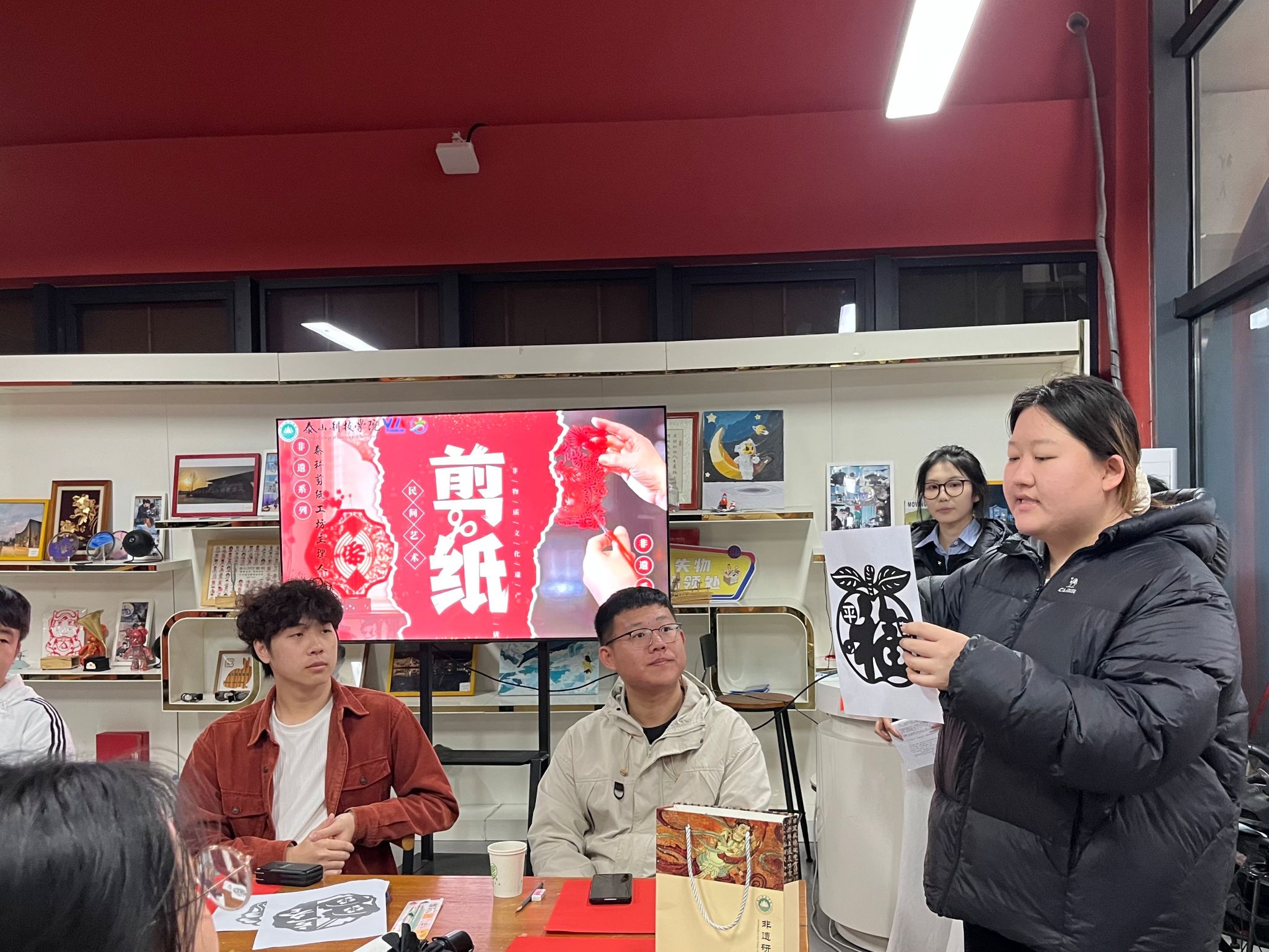 大家纷纷举起作品交流展示——有的细腻工整、布局巧妙;有的稚拙可爱、创意满满。一幅幅刻纸,不仅是立冬物候与诗意的凝结,也是每个人对传统文化的一次个性诠释,成为这个冬日最独特、最温暖的记忆。现场欢笑声与快门声交织,定格了这份手作的喜悦与自豪。