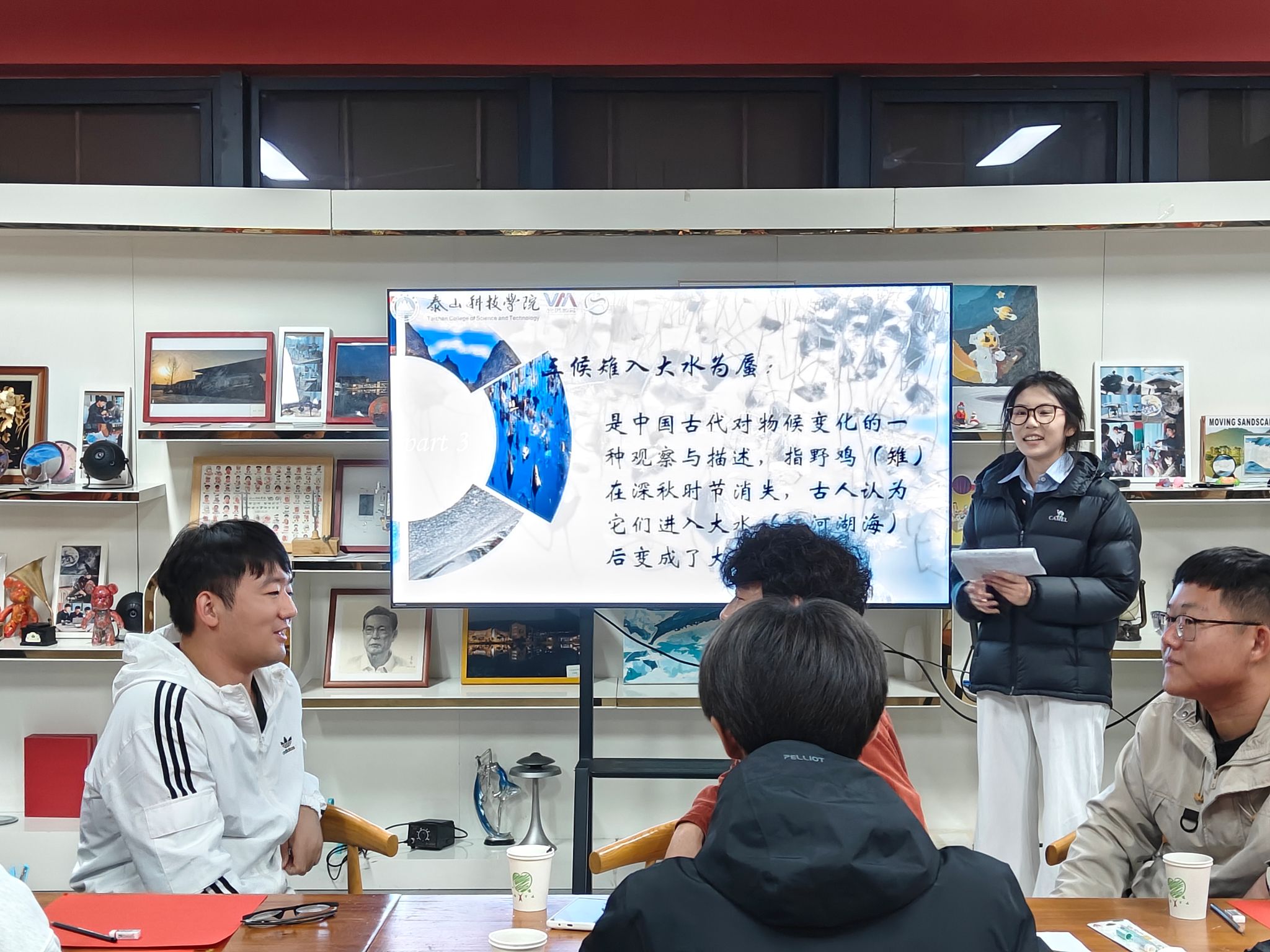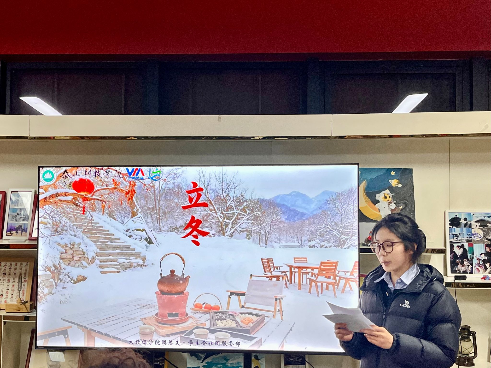活动伊始,一部精心制作的短片缓缓展开立冬与非遗传奇的画卷,点燃了全场的好奇与期待。短片之后,是“立冬文化解读”环节。主持人以轻松互动的方式,解读“立冬”二字背后的深意——“立,建始也;冬,终也,万物收藏也”,那份“休养生息”的古老智慧,悄然抚慰着每一个身处快节奏生活中的心灵。紧接着,“立冬三候”的生动讲述——从“水始冰”到“地始冻”,再到“雉入大水为蜃”,不仅勾勒出一幅万物敛藏、天地渐寒的时序图景,也唤醒了大家对自然律动的感知与浪漫想象。