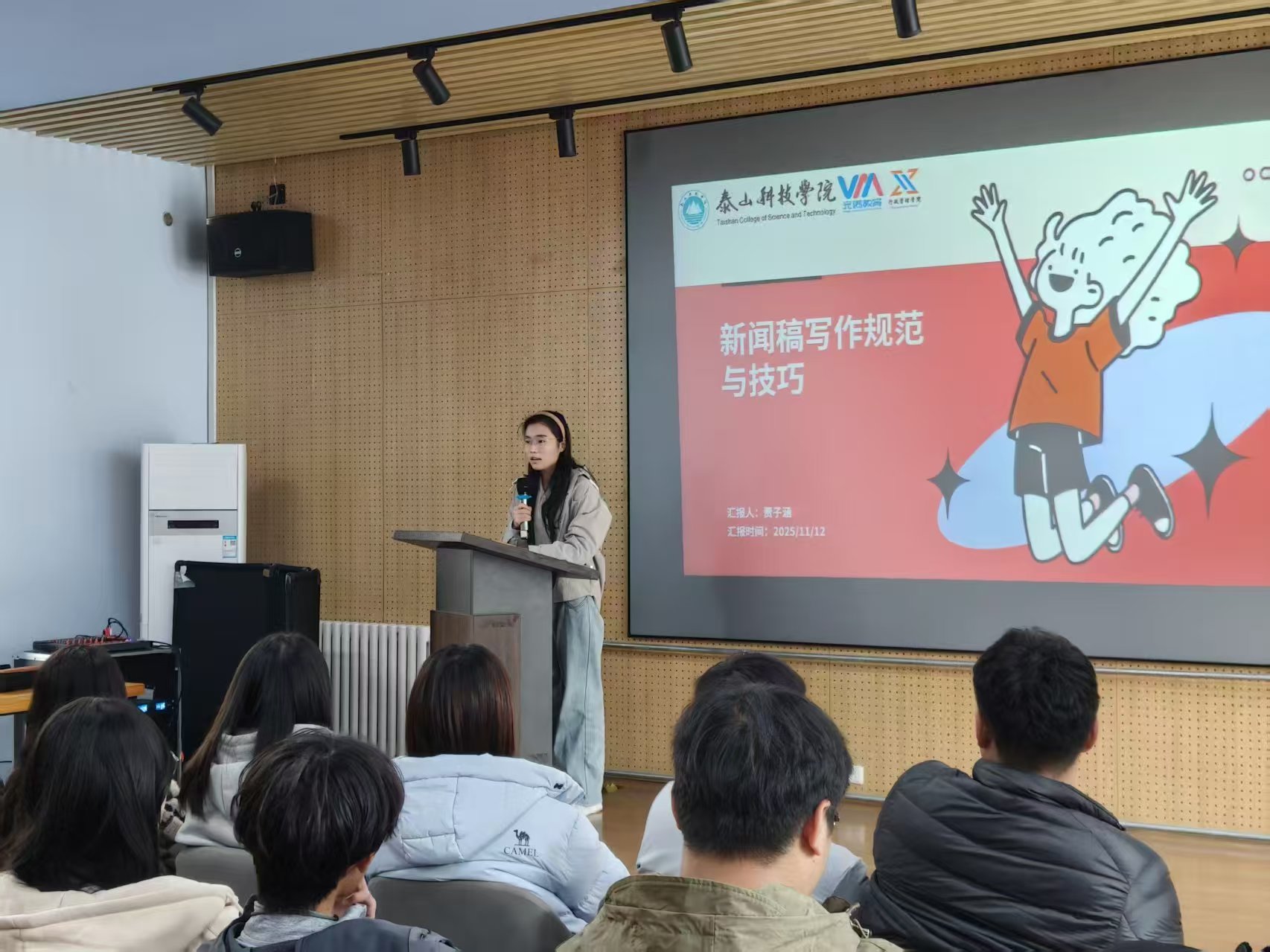 各具特色的活动能进入同学们的眼帘,宣传工作必然得做到位。“笔落生花·讯传新声”新闻稿专项赋能培训活动在淬炼商学院组织部与就业创业助理团合作下如期开展。王铭豪同学从新闻稿的意义、新闻稿标题创作以及新闻稿类型三个方面展开分享,强调了一篇好的新闻稿要做到“以文载道、以字传情”的效果。同时将“淬炼青春说”“青春泰山”等投稿平台的文章进行解读,强调了格式规范、时效性把控、原创性校验等关键要求。这次培训会不仅帮助学生骨干提升了新闻稿创作与活动传播能力,更为完满教育注入更多青春动能。
