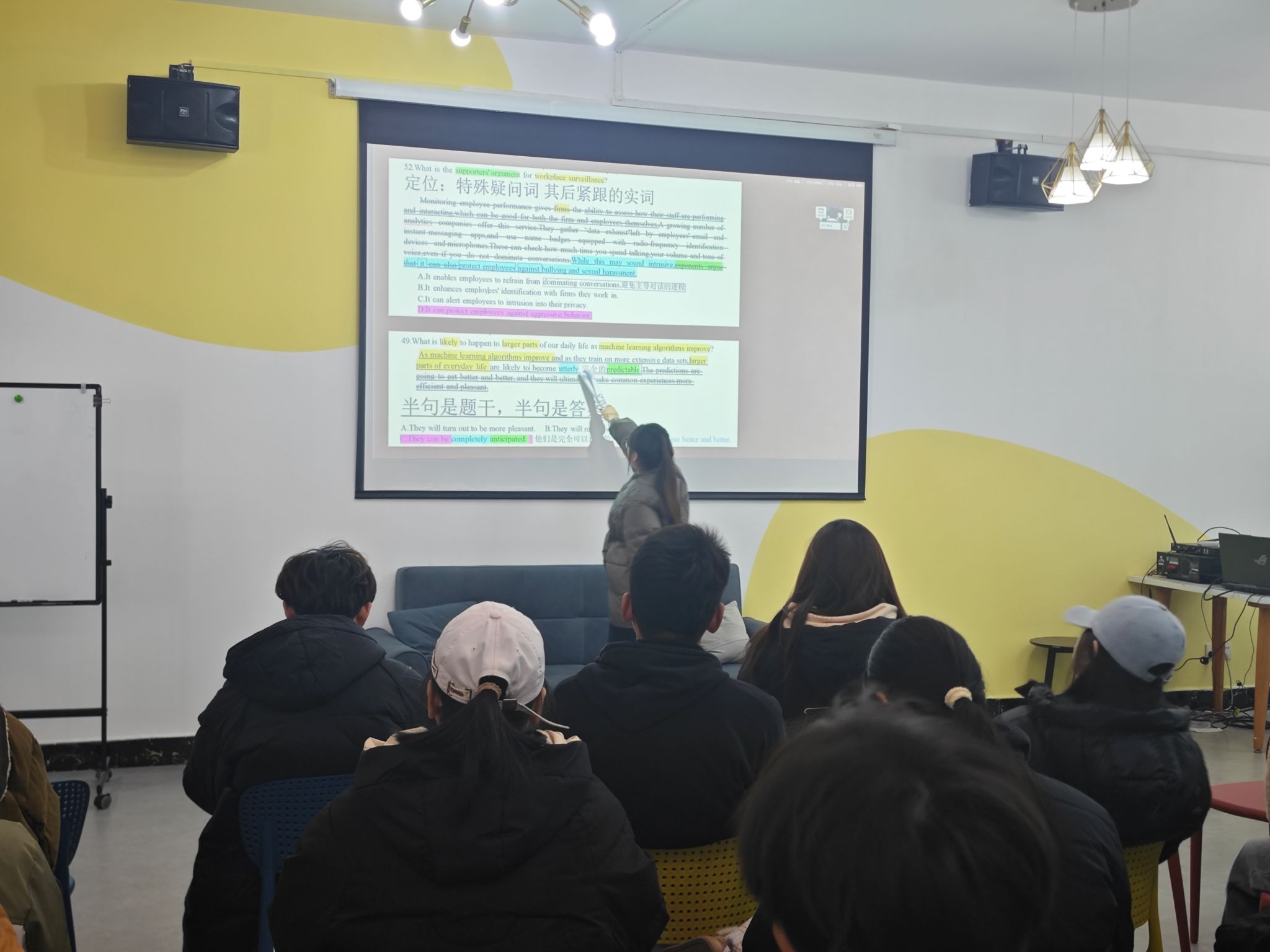大学英语四六级考试如约而至,为了提高考生备考效率,缓解考前的焦虑情绪,通信工程学院学生会学习部以“英击长空。学长四六级助攻会”为题为我们提供了系统、实用的备考指导。梁斌同学针对阅读部分,提升学生的定位、拆解与速读能力。活动中设置的互动答疑与词汇竞赛环节,进一步激发了同学们的学习兴趣,增强了学生的参与感与获得感。本次活动展现了通信工程学院学子之间“传、帮、带”的优良学风与互助精神,强化了书院内部的学术支持网络。