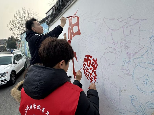 笔墨映乡情,创意暖村落。马年将至,为让乡村颜值再升级,给文旅发展添份新意,泰山科技学院建筑工程学院青年志愿者协会的志愿者们,带着对建筑艺术的热爱奔赴白马石村,开展了一场特色墙绘创作活动。