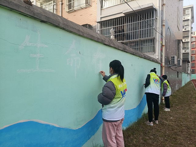 墙绘,可以传达学校的理念与思想,为学校增添了艺术性和生命力,给师生带来视觉享受,不仅为校园增添了一道靓丽风景,充分发挥环境的隐性教育功能,而且增强了该校环境育人的教育理念,彰显了校园文化的特色。本次文化墙绘设计活动,同学们感受到志愿服务的快乐与辛苦,增强了志愿服务队团结集体意识,践行了志愿青春的意义,体现了新时代青年的责任与担当。