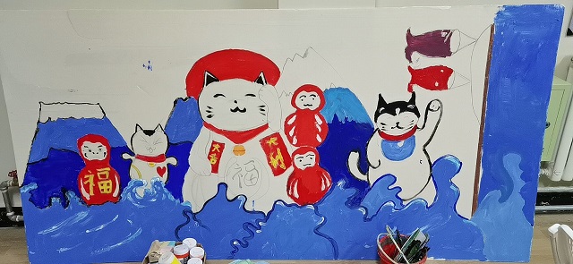 分享交流结束后,随后开始参加者的墙绘体验活动。各位参加者在泡沫板上发挥想象、为线稿进行上色,实际体验墙绘绘制的过程。在上色过程中,参加者使用画笔一笔笔地进行色彩的绘制,各种颜色的同时交融,完美的展现出色彩的绚丽,绘制出一副完美的墙绘作品。参加者刘雯璟表示:“很高兴参加到这次乡村文化墙分享交流会,在这次活动中,听到各位同学的分享,感觉墙绘活动非常有意思,也非常具有意义,没能亲自参与到墙绘活动中非常遗憾,能够参加此次活动,用画笔为泡沫板进行上色,也是体验了一下墙绘的乐趣,希望下一年可以参与到墙绘活动当中,能够身临其境一番,加入到温馨的墙绘大家庭当中。”绘画完成后,各位参与者把绘画用的画笔放到水桶,依次离开,活动圆满完成。