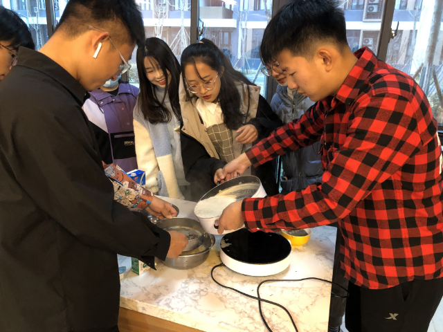 11月27日,淬炼商学院全生异科导师孟珩老师和同学们在东岳书院创意厨房进行主题团建活动。“我会和面”、“我调的水饺馅还是很棒的”、“我会做烘焙”,大家你一言,我一语,像是一次家庭的聚会,不同于之前的拘谨和腼腆,似乎大家都想在厨房露一手,整个过程更是忙的不亦乐乎,充满了欢声笑语。