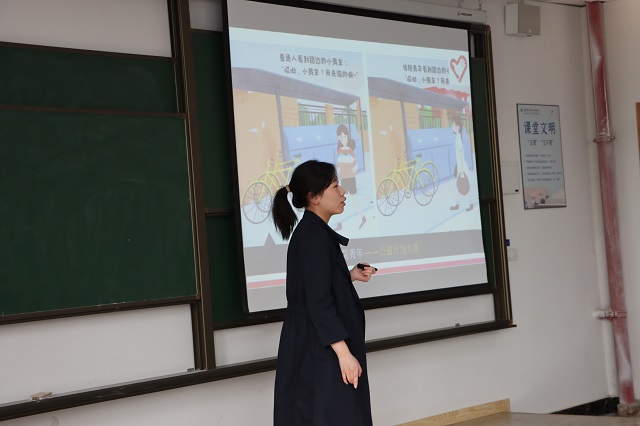 开班仪式结束后,由吴静老师开展第一课《校园志愿服务专题建设培训》。通过移通学院志愿服务活动和经典案例分析,提出志愿活动应该“人人参与,立足当地”的理念。在师生交流环节,来自校青年志愿者协会的连胜洋同学对“举办活动时,如何从一个点子上衍生出多种形式,而不是重复利用”这一问题进行提问,吴静老师建议同学们打开思路,从不同方向将点子进行细分,找到侧重点开展活动,并且组织志愿活动应该多方面融会贯通,多层面发展,找准大众需求。