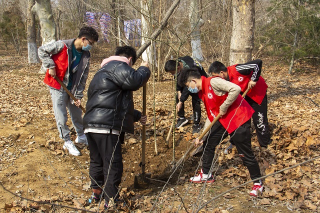 3月12日,智能工程学院、通信工程学院青年志愿者协会举办义务植树护绿行动——“我和春天有个约会”,积极践行中华民族爱树、植树、护树的好传统,积极践行习近平总书记所提出的绿色发展观。35名志愿者步行来到植树地点,并由苗圃工作人员向志愿者们讲解植树的技巧,然后积极投入到植树活动中,志愿者们用铁锨铲土挖坑、培实新土、拉管浇水,用自己的双手和汗水呵护绿色、播种绿色、守护绿色。