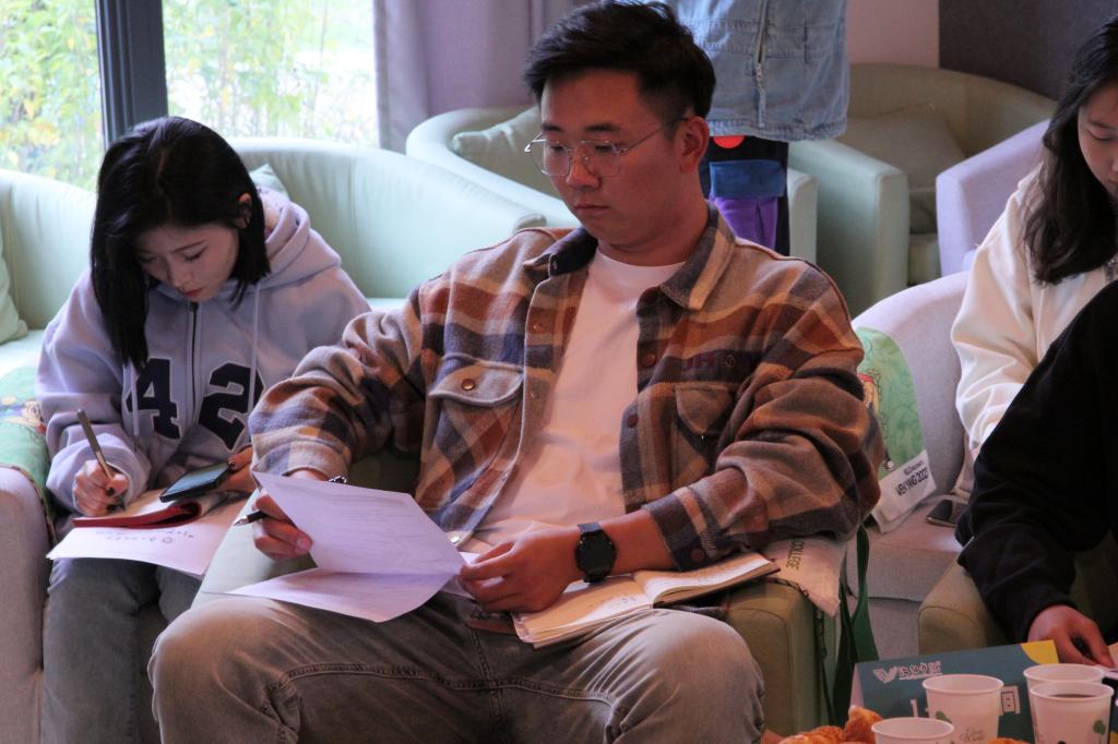 伴随着杯中茶水位度的升高,汶阳书院发展导师田米爽老师开启了今天的“话匣”。他指出项目工坊与书院是一种双向奔赴,并对汶阳书院工坊入驻情况一一进行介绍。在与各项目工坊针对工坊日常运行、成果产出标准、文化氛围营造及联动协同育人等方面达成一致,将《汶阳书院项目工坊考核制度表》落实。今后双方会致力于项目工坊内部建设、成果输出,从而达到书院与工坊互通互融,你中有我我中有你的成效。在“一品一馆一工坊”的牵头指引下,注重于活力提升,向上涌现,不断生长,打造独数汶阳品牌的活力新圈层。