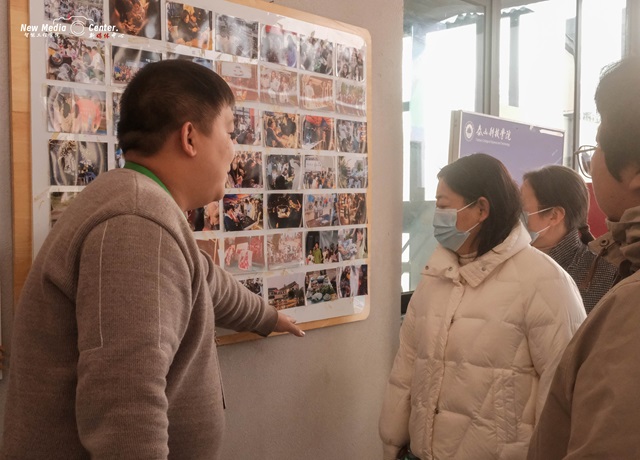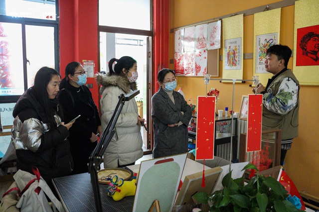 记者团参观的最后一个书院是东岳书院。东岳书院是最接地气的一个书院,书院之名以泰山为依托,积极构建宽大为怀、孕育生机勃发的书院社区,磨砺岱宗学子“会凌绝顶”的攀登意志,树立“重如泰山”的价值取向,培养“不让土壤”的博大胸怀,明确“捧日擎天”的光明追求,勇担“国泰民安”的美好寄托,以泰山精神滋润和培养新时代的“挑山工”,以大国工匠和劳动教育为主题营造书院内部文化。在东岳书院讲解员带领下,记者老师们参观了多功能排练厅、书院微光室、有间书屋、生活能量站、绿海庭院、瓦屋影视工坊、造物一方、一纸空间等功能房间。在造物一方活动室与一纸空间活动室,记者团还在非遗传承人李润同学的带领下体验了拓印与剪纸,记者们把一张坚韧的薄纸事先浸湿,再敷在石碑上面,用刷子轻轻敲打,使纸入字口,然后用刷子蘸红墨,轻轻地、均匀地拍刷,使墨均匀地涂布纸上,然后把纸揭下来,一张白底红字的石刻文字便被拓印在了纸上。