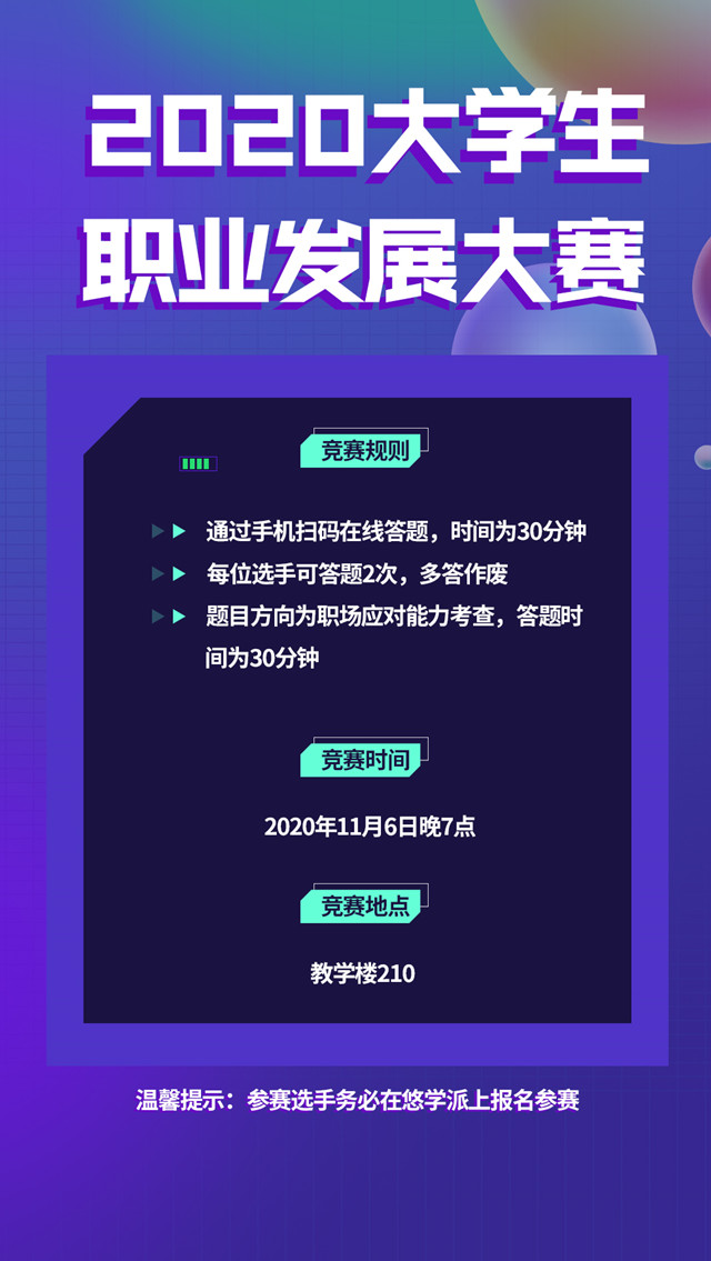 开拓知识,展望未来。为提高大学生职业发展修养,以赛促教,充分发挥职业知识竞赛对大学生的引领和认知,使学生更好的了解自己发展方向,提高学生对职业未来的了解与发展。大数据学院于2020年11月7日举行大学生职业发...
